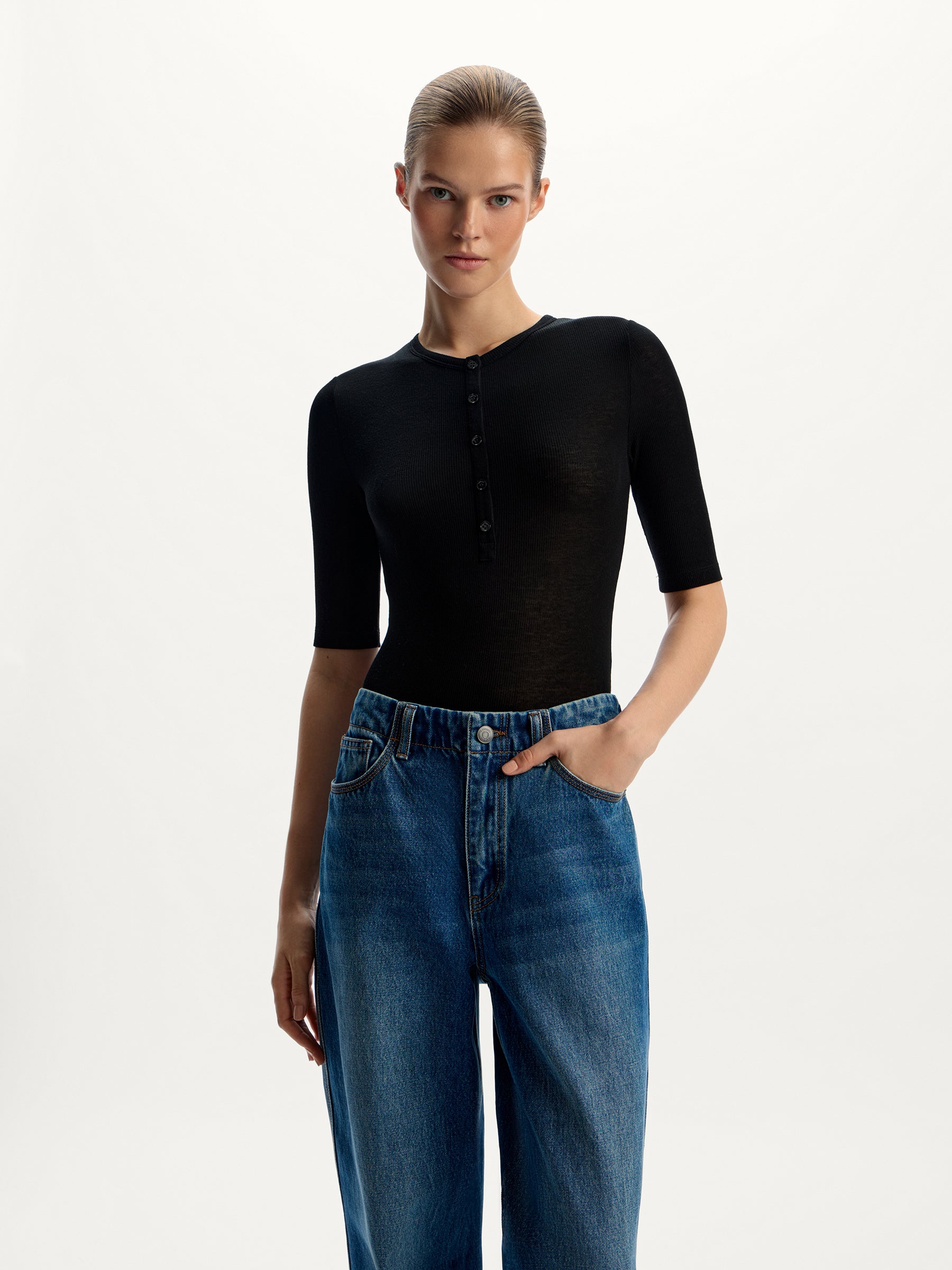 A tactile foundation for your cold-weather wardrobe, this bodysuit is crafted from a blend of lyocell, wool, and elastane that softly hugs your curves with a close fit and keeps you warm. The henley neckline layers perfectly under blazers and jumpers.