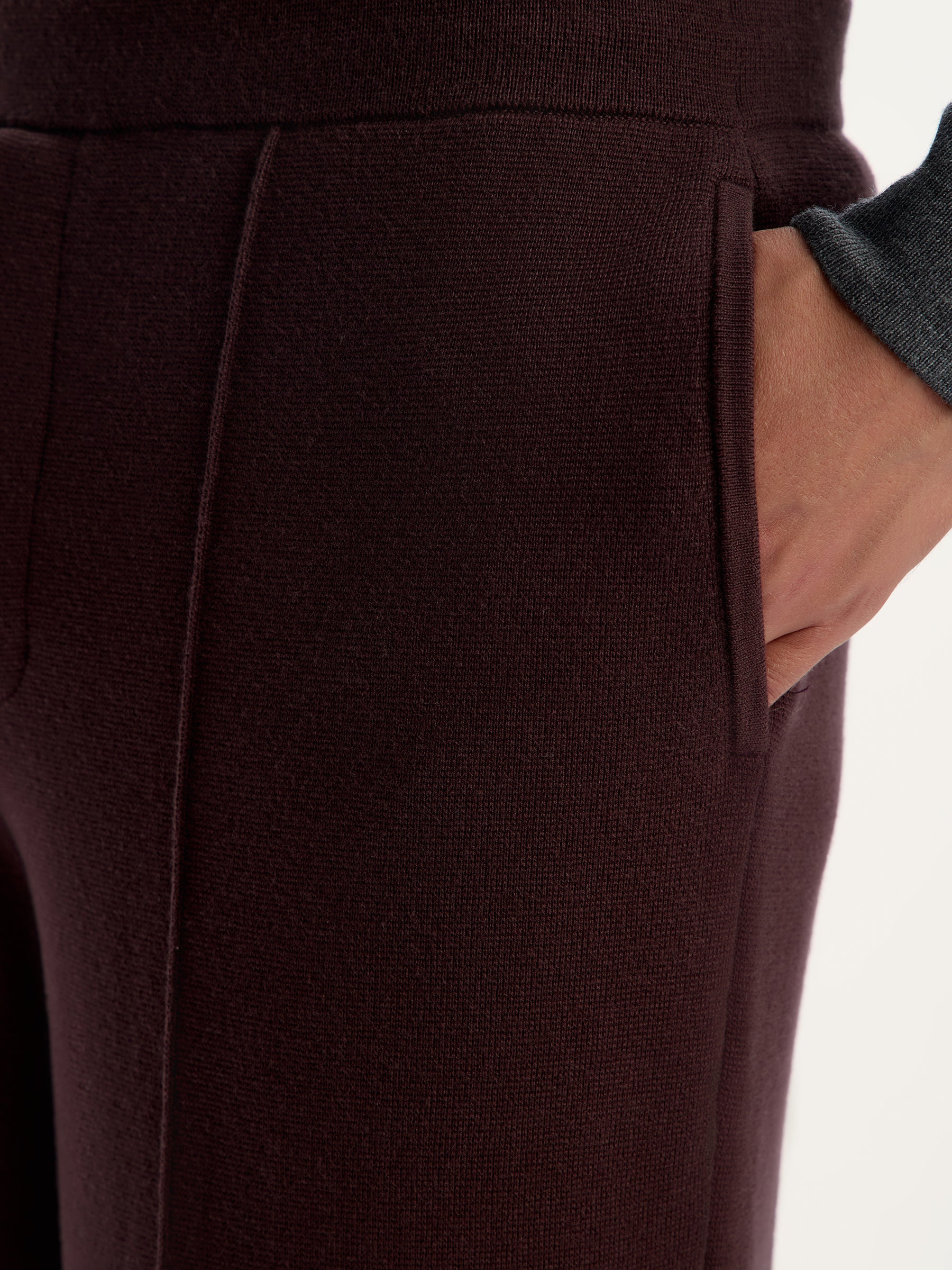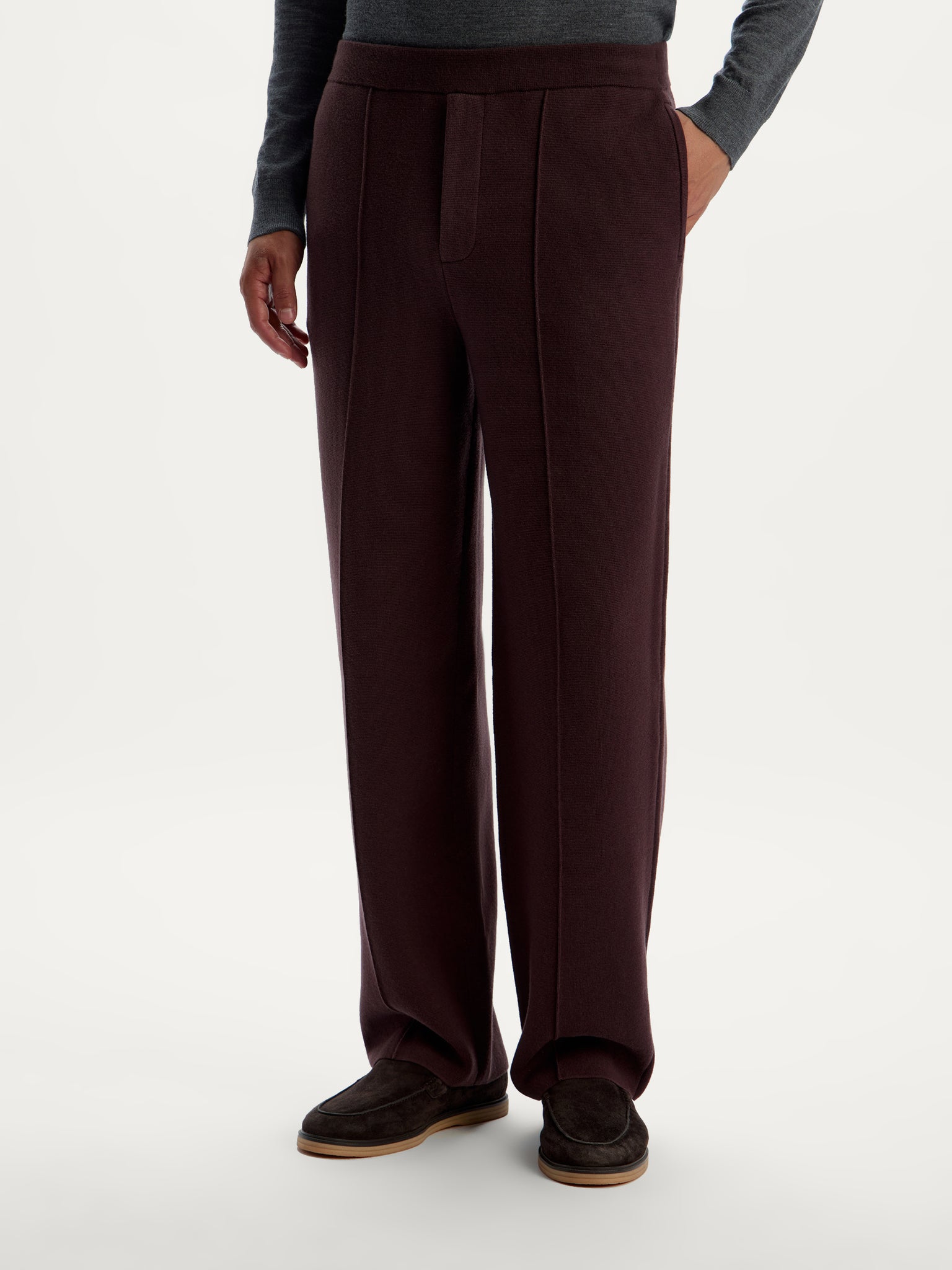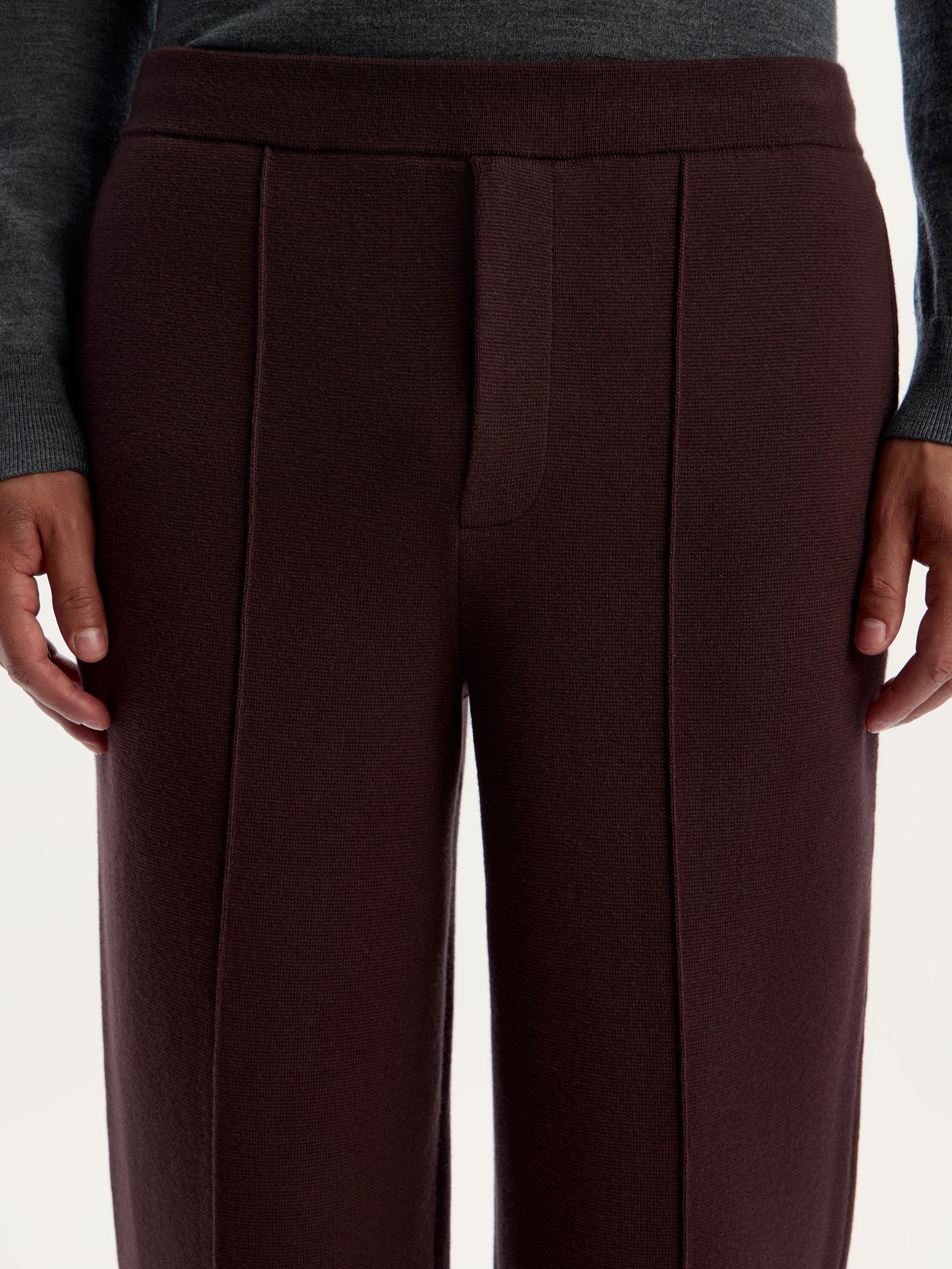 A fresh and cosy take on tailoring, these trousers are knitted from a blend of merino wool and cotton, featuring a straight-leg silhouette with stitched creases and a flexible elasticated waistband. Pair them with the matching blazer from the capsule.