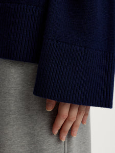 A go-to for cold months, this jumper is crafted from pure merino wool, featuring a roomy fit that's gentle on the skin — even without a tee underneath. Knitted from four strands, it blends practicality with exceptional softness.