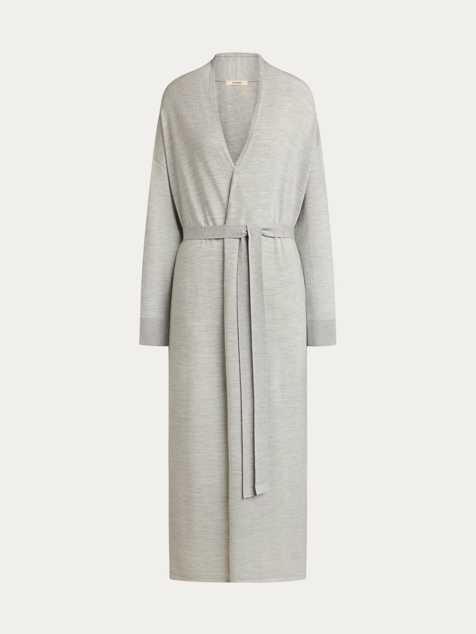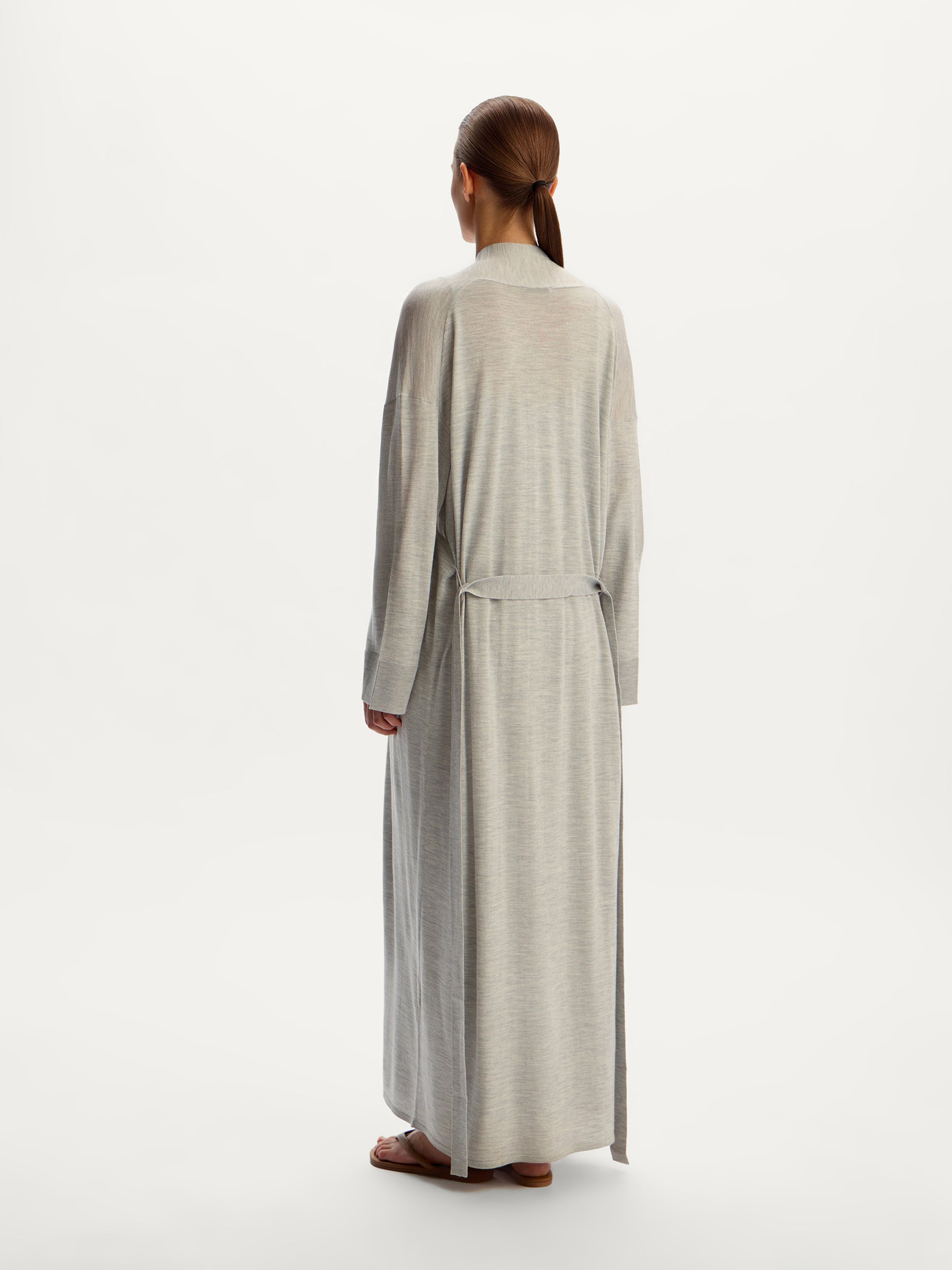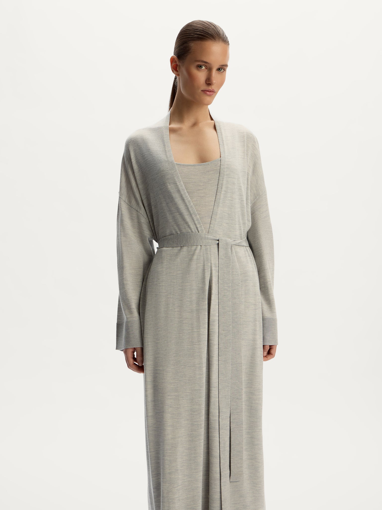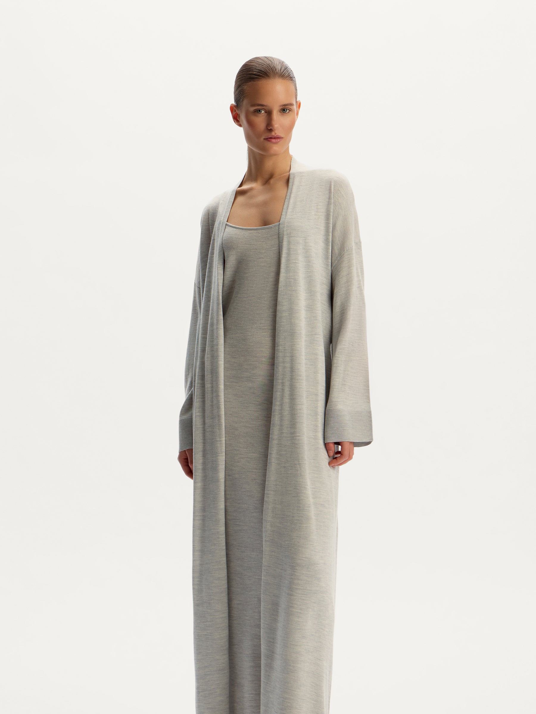 A chic layer for the warmer seasons. this cardigan is knitted from a lightweight merino-silk blend in a longline silhouette with mother-of-pearl buttons. Style it with a white T-shirt and jeans for the day or complete the look with the matching 12 STOREEZ slip for the evening.