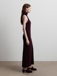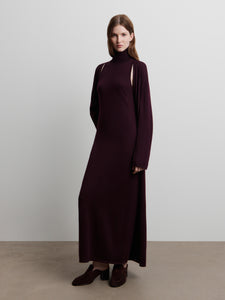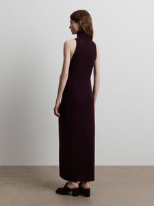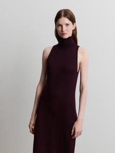 A refined silhouette for evening plans, this maxi dress features a high neckline and is knitted from a lightweight blend of merino wool and silk. The fabric drapes fluidly and catches the light with a subtle sheen, while offering a soft and delicate touch against the skin. Wear yours with seamless underwear for a flawless look.