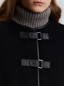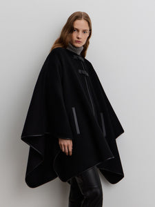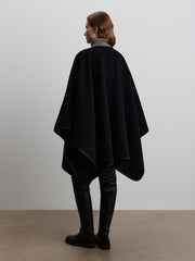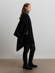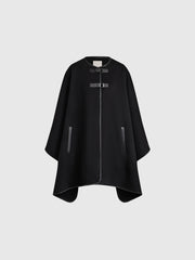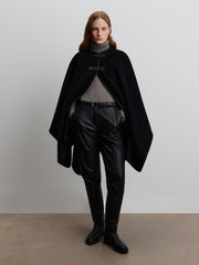 A cosy alternative to a trench coat, this cape is crafted from merino wool with leather straps, offering a relaxed silhouette that feels like a blanket draped over your shoulder. Made using a double-face technique with neatly concealed seams, it's unlined for a lighter feel and finished with delicate leather piping along the edges.