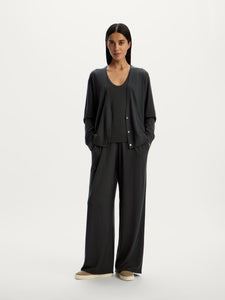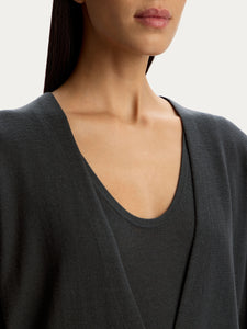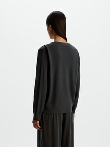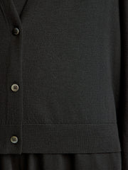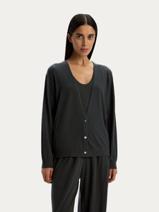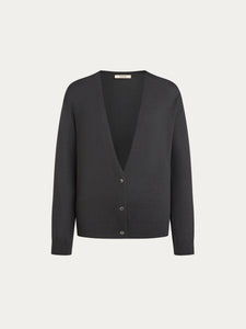 A staple for layered looks, this cardigan features a deep neckline, soft lines, and a versatile silhouette that fits into any wardrobe. Finely knitted from a single strand of merino wool, it feels lightweight and delicate against the skin. Finished with natural mother-of-pearl buttons