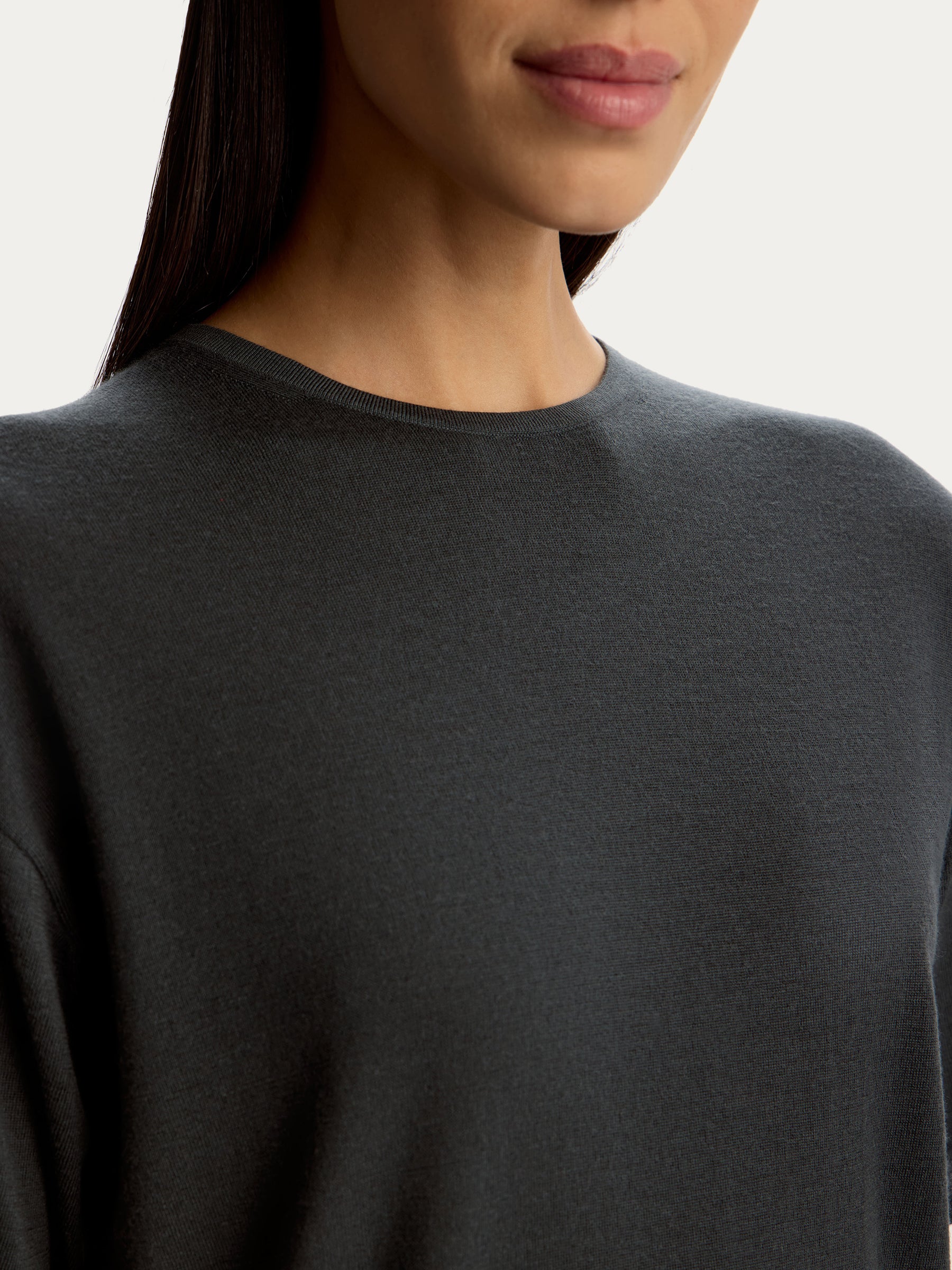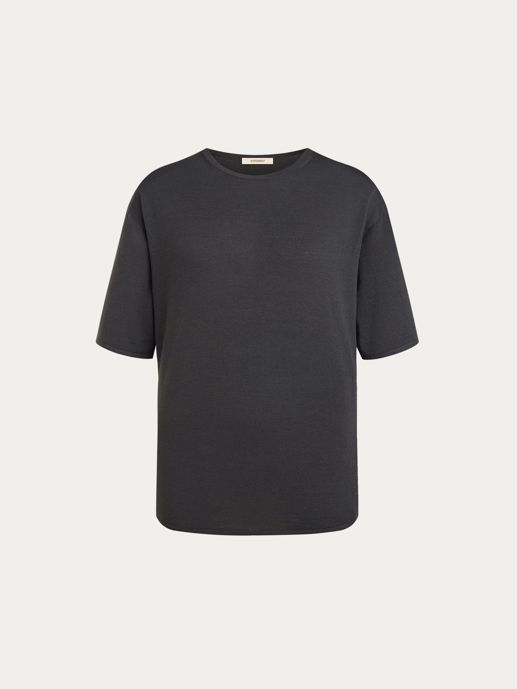A relaxed wardrobe staple, this jumper features a classic crew neckline, short sleeves, and delicate edges. Finely knitted from a single strand of merino wool, it feels lightweight, breathable, and soft against the skin.