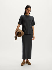 A relaxed wardrobe staple, this jumper features a classic crew neckline, short sleeves, and delicate edges. Finely knitted from a single strand of merino wool, it feels lightweight, breathable, and soft against the skin.