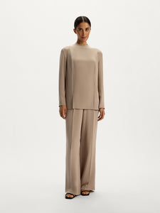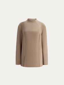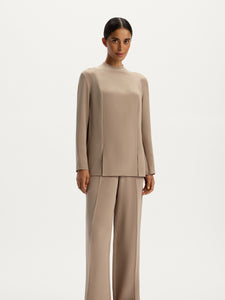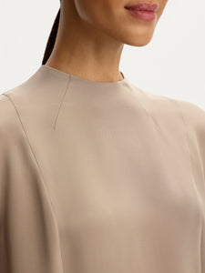 Crafted from Mulberry silk, this blouse features a minimalist panelled design with zips in the sleeves and front slits. Lined with silk chiffon, it showcases no visible seams for a polished look. The versatile collarless silhouette easily transitions from office days to special evenings.