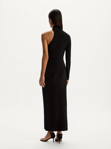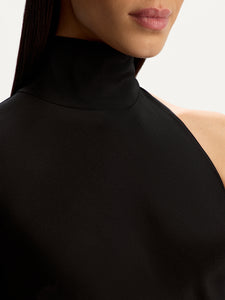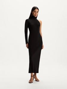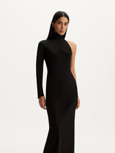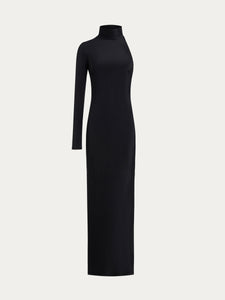 For your special evenings, this dress boasts an asymmetrical design with a single sleeve and a floor-sweeping hem. Crafted from dense Mulberry silk, it offers a flattering fit that subtly highlights your curves. Lined with silk chiffon. the dress showcases no visible seams for a polished look.