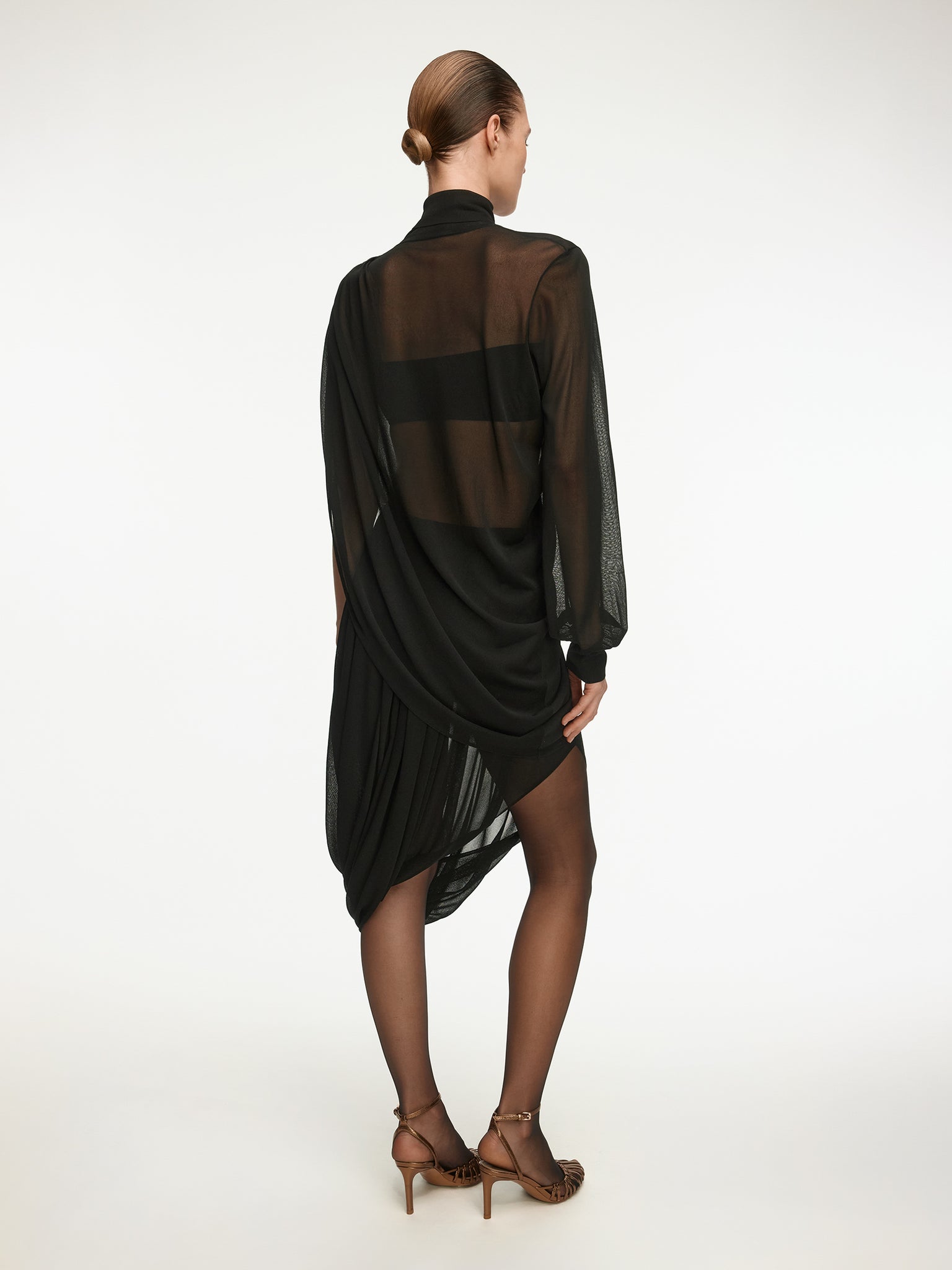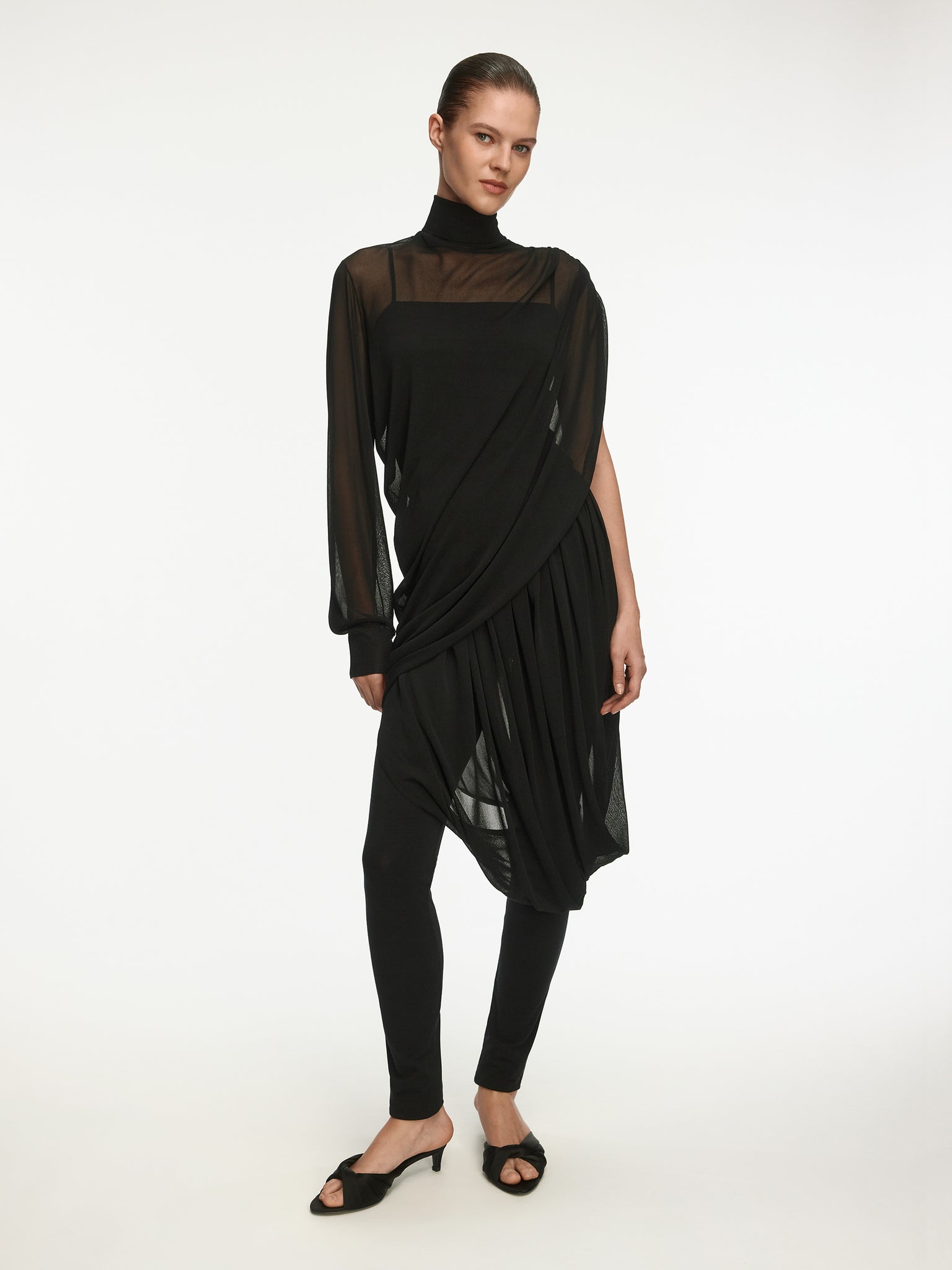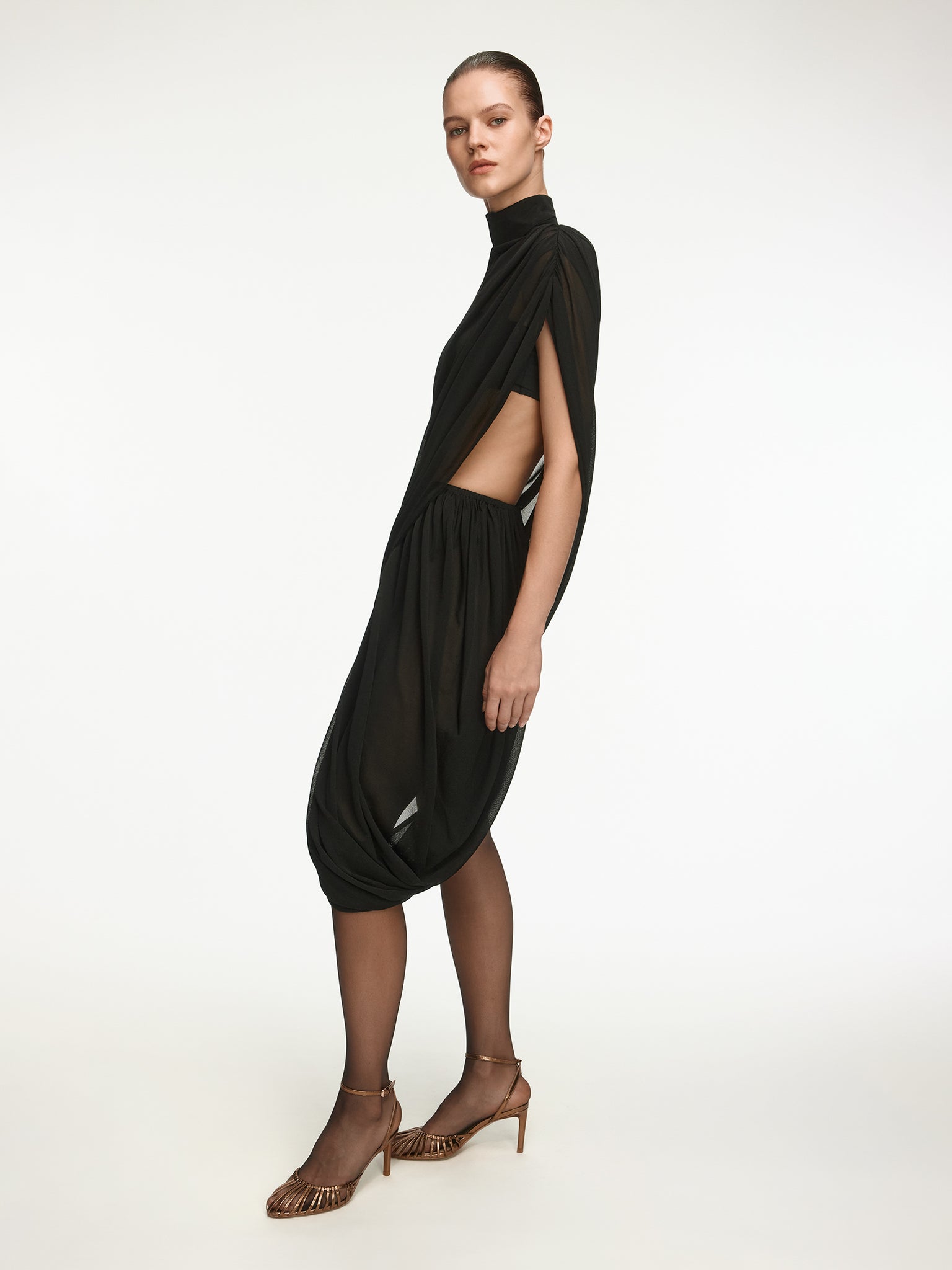 2. Asymmetrical cut reveals the leg and creates a sense of movement with its intricate construction