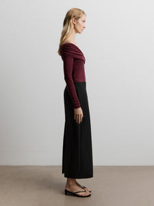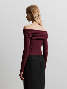A statement silhouette that doesn't compromise on comfort, this top is crafted from a tactile, stretchy blend of viscose, wool, and elastane that softly adjusts to your curves. The neckline is elasticated for a secure fit. Wear yours with tonal underwear for a flawless look.
