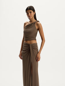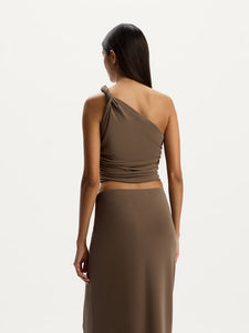 Made for days that turn into nights, this top features a draped one-shoulder silhouette and a subtly open back. Crafted from fluid, textured crepe, it works with different fabrics, while its close fit layers easily under blazers and jackets. Complete the set with the matching 12 STOREEZ skirt.
