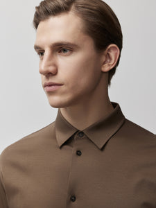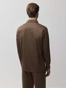 A comfortable alternative to classic button-ups. This shirt is crafted from Pima cotton, offering a soft touch against the skin and a subtle lustre. Wear yours fully buttoned or over a T-shirt for a layered experience. Complete the set with the matching Pima cotton trousers from the capsule.
