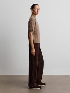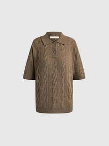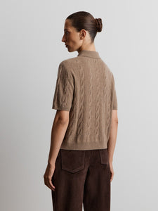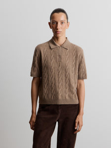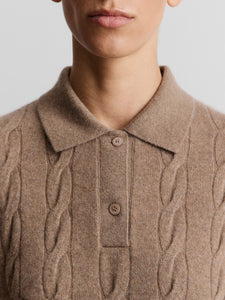 - Lightweight cashmere polo knitted with a cable pattern for a timeless, preppy look