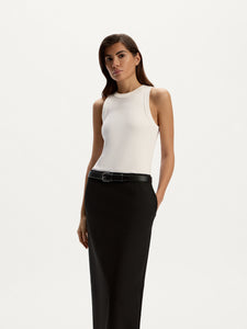 A must-have for your wardrobe. this tank top is designed in a snug, body-hugging silhouette from tactile ribbed cotton. Its versatile length allows for a neat tuck into jeans or a casual, untucked look.