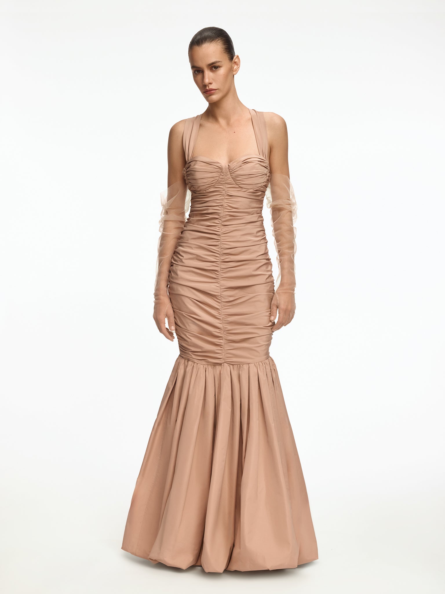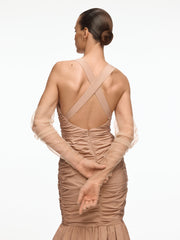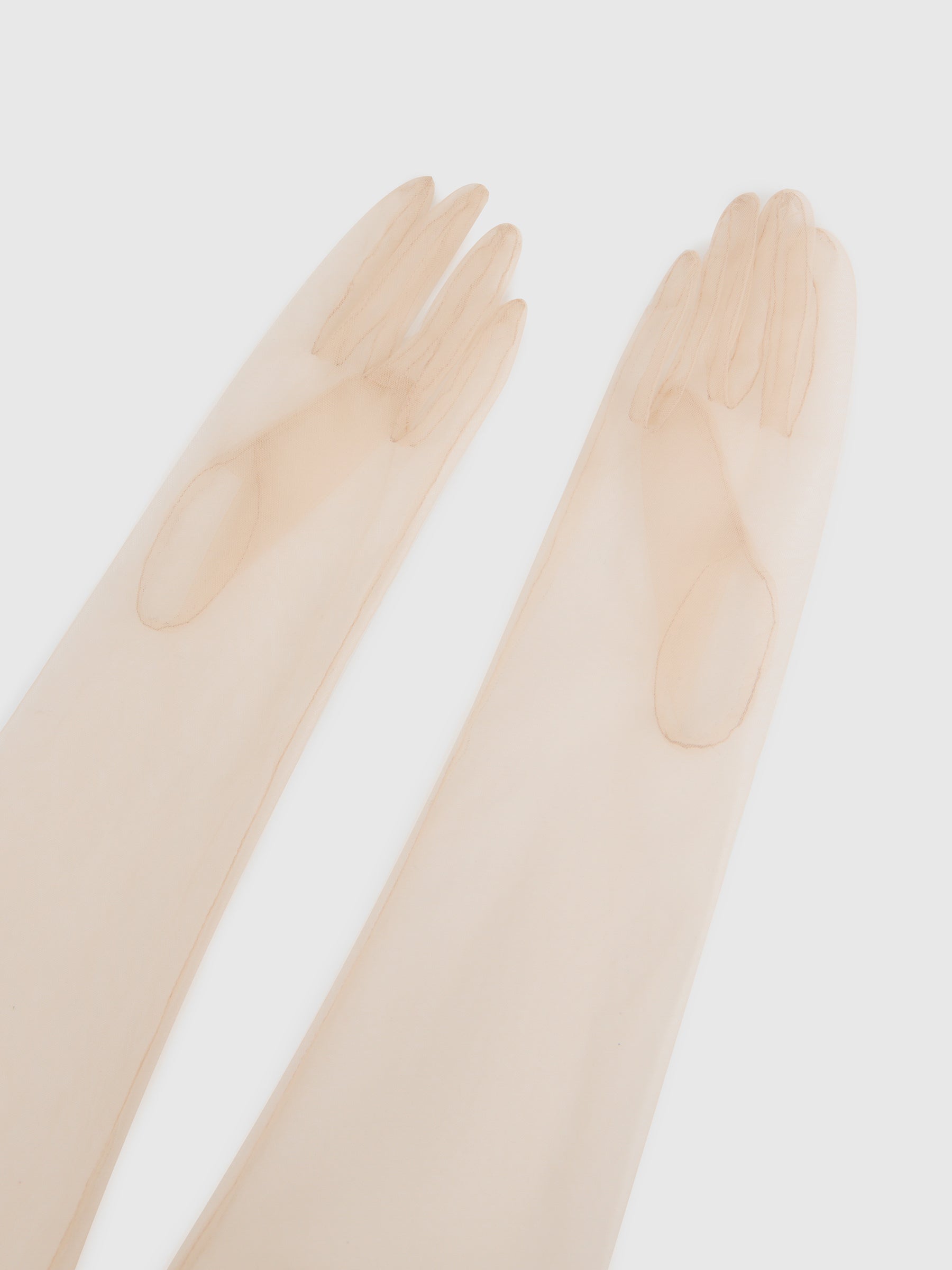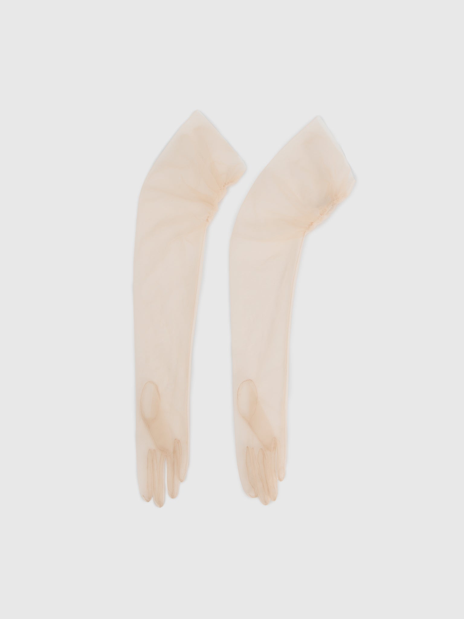 1. Evening gloves that reach the shoulder; wear them fully stretched or softly draped