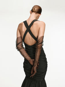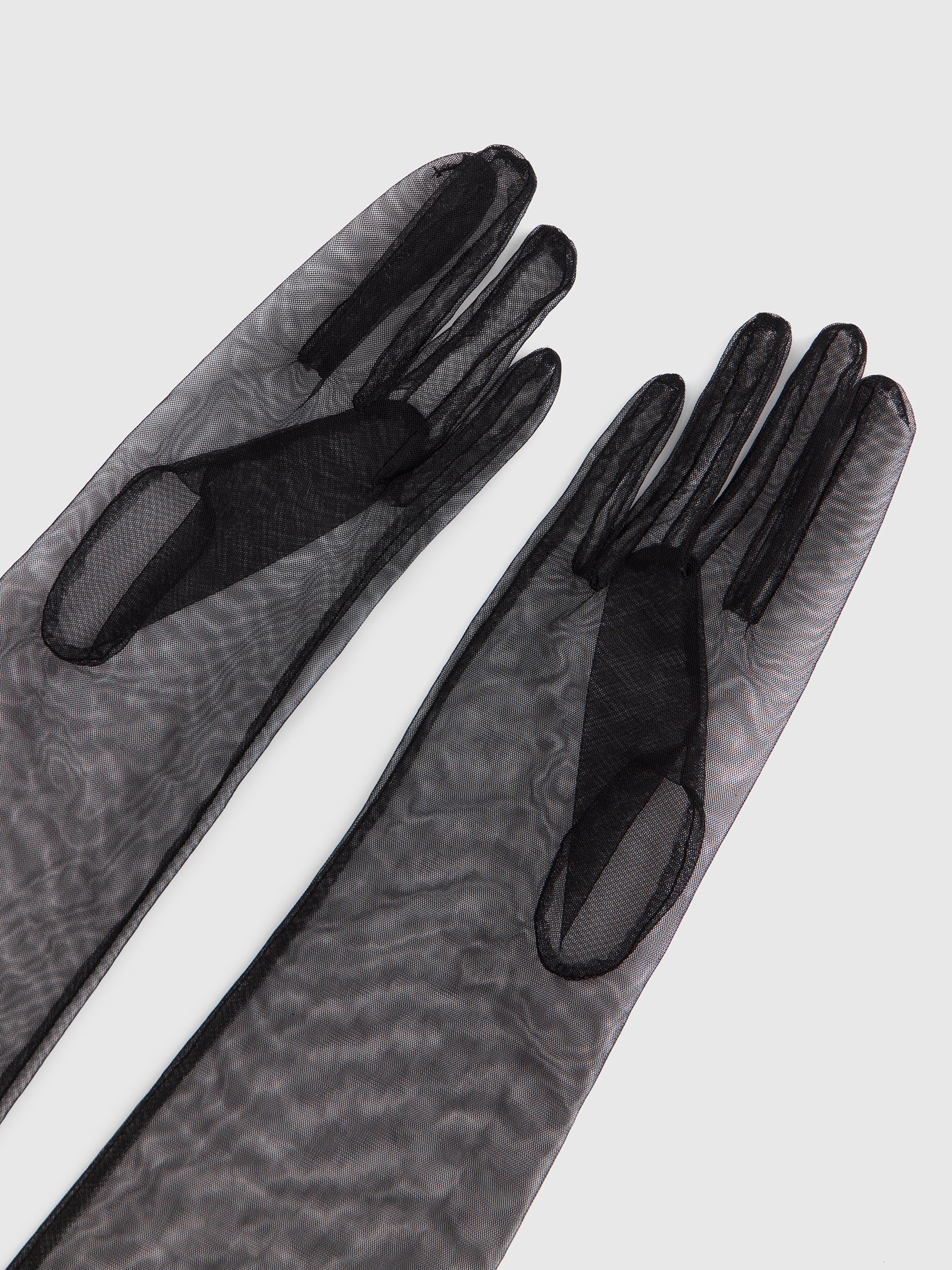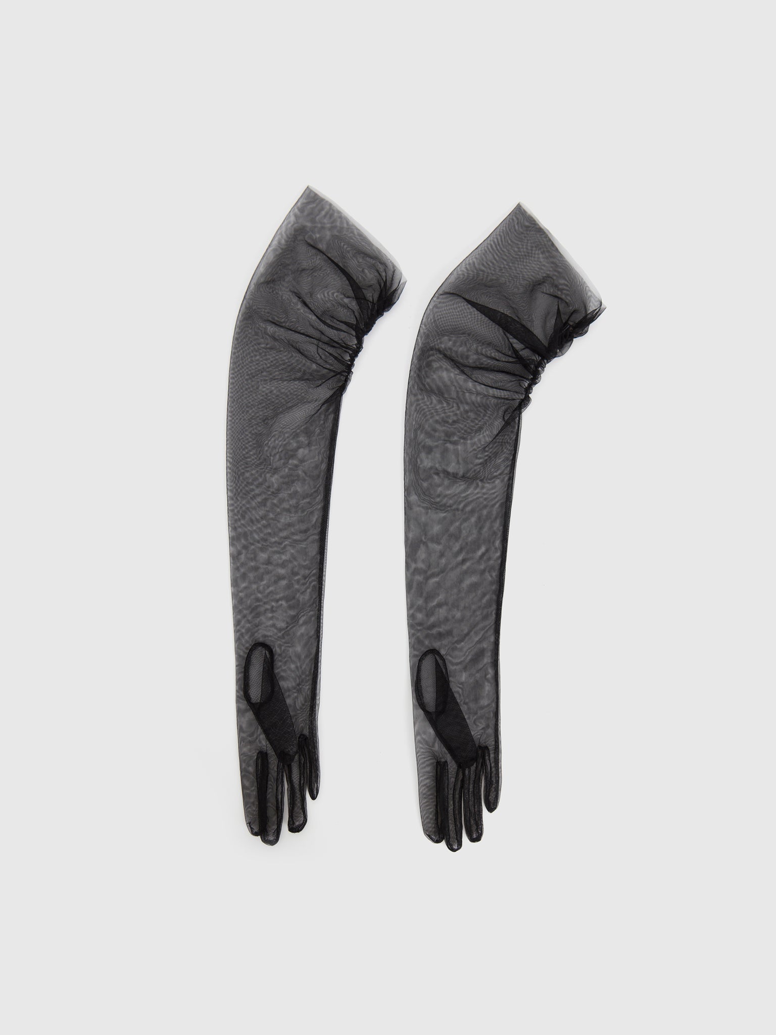 1. Evening gloves that reach the shoulder; wear them fully stretched or softly draped