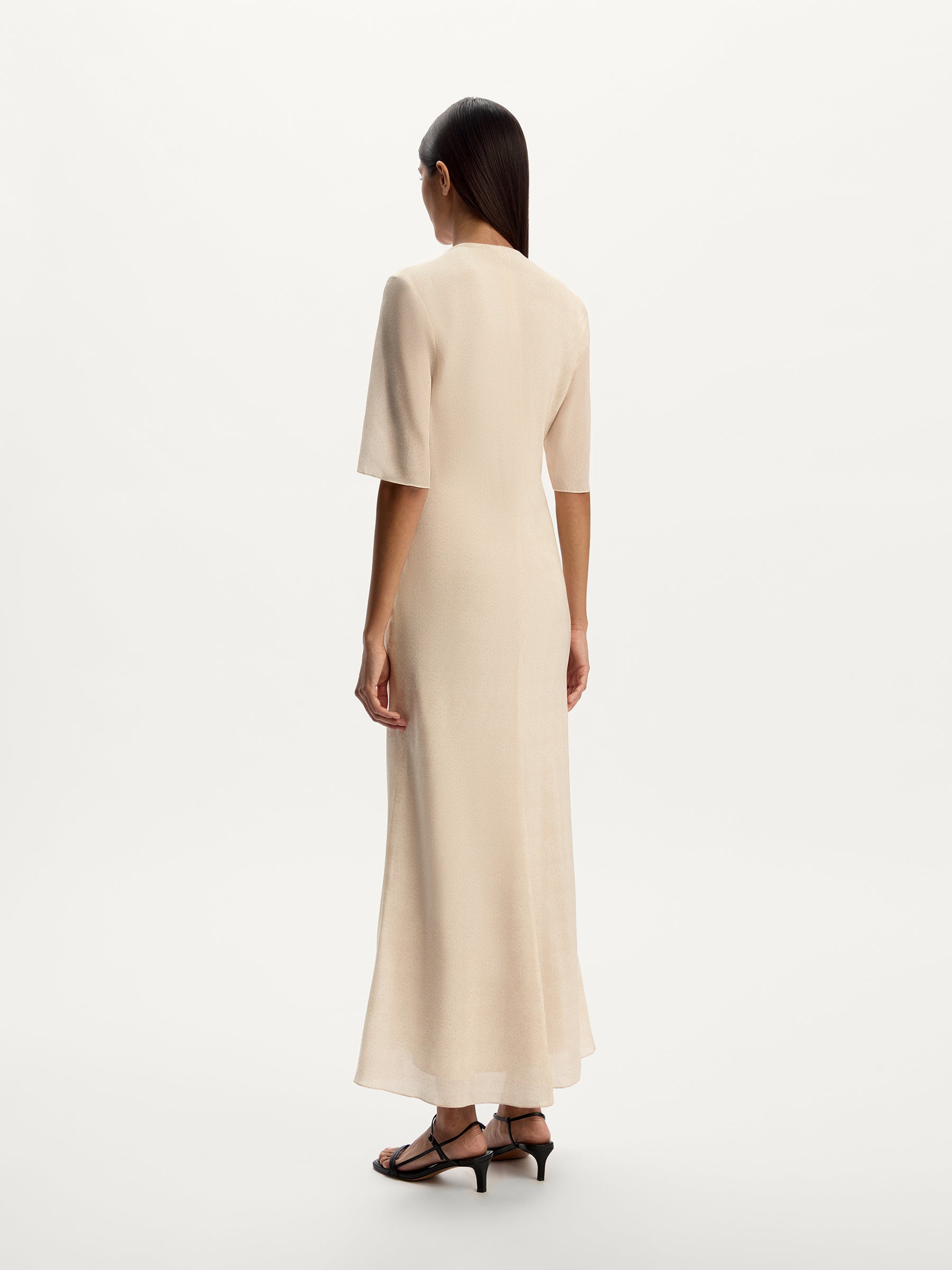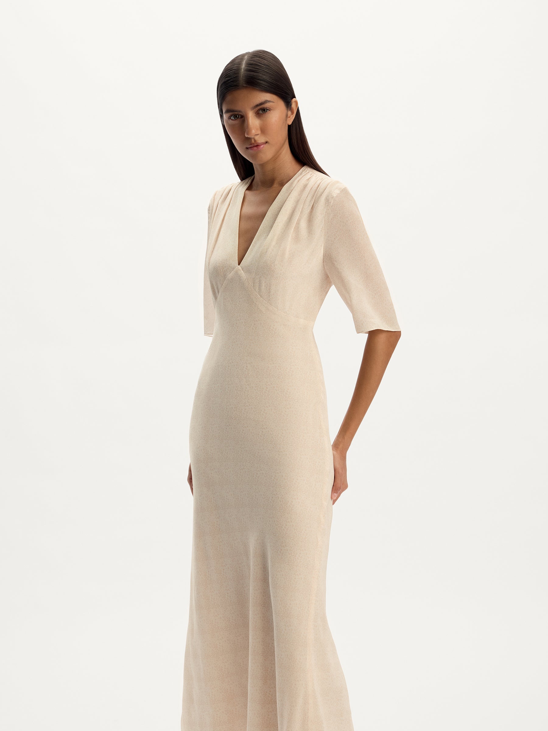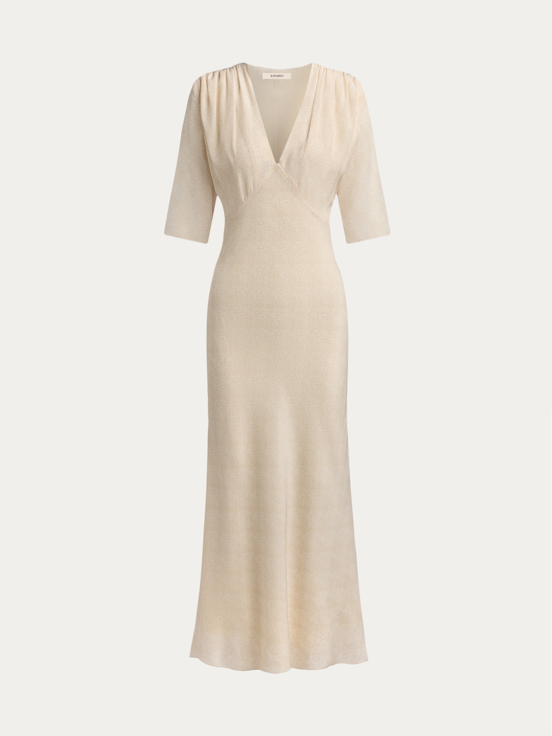 A timeless evening silhouette, this dress is crafted from lightweight silk chiffon that drapes elegantly and creates soft, flowing folds as you move. Lined with viscose and silk for comfort. Pair it with sandals for a night out or boots for a more casual look.