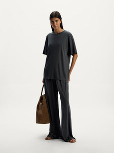 A relaxed essential with a refined feel, this T-shirt is crafted from fluid, lightweight silk jersey that cools the skin and drapes softly. Its delicate sheen makes it just as suited for the beach as for evening plans. This season, we’ve improved the fabric so the colour lasts longer. Complete the set with the matching 12 STOREEZ trousers.