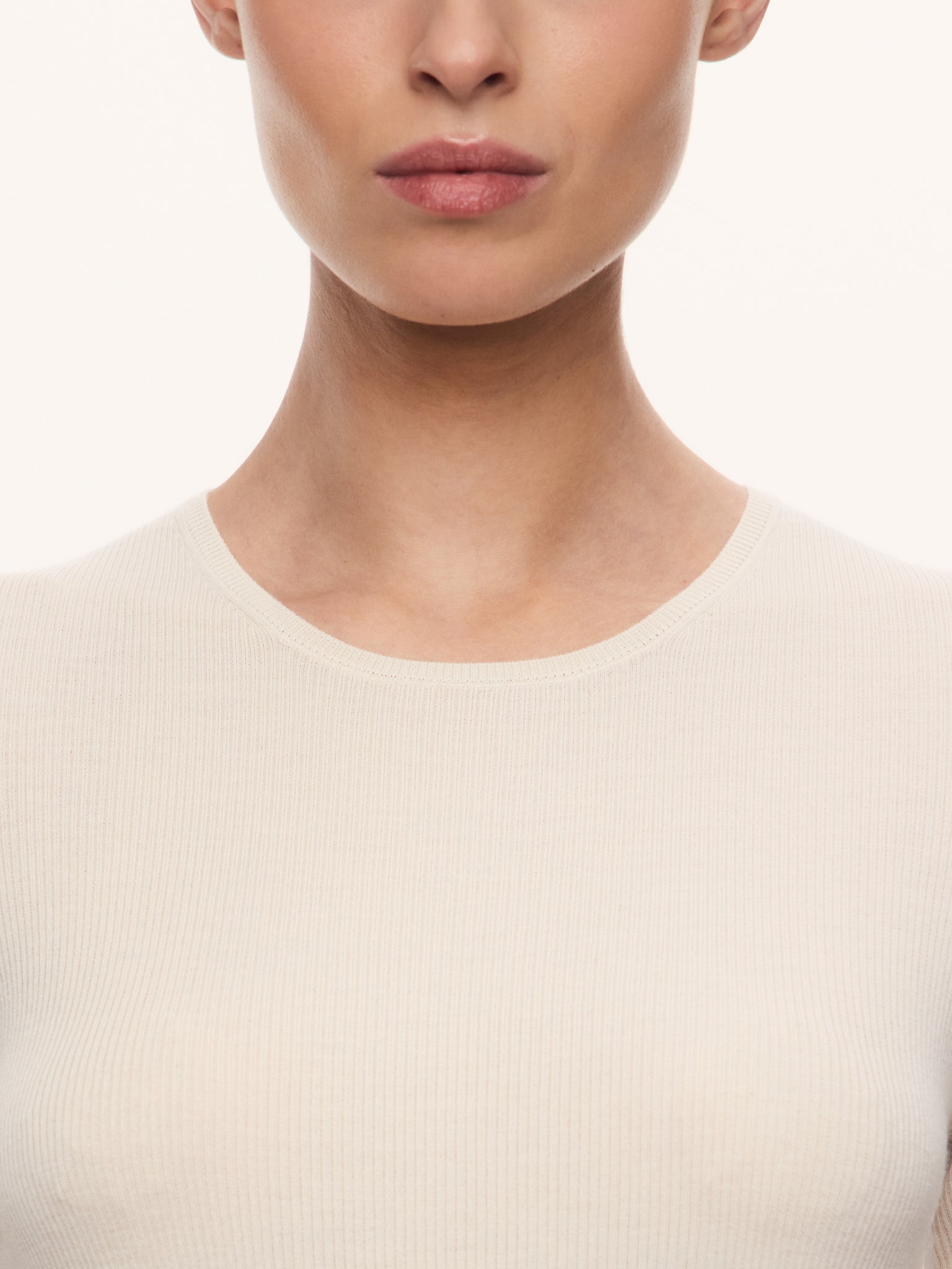 2. Ribbed construction gives the knit gentle elasticity, helping it hold its shape and softly follow your lines