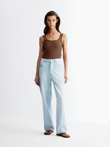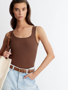 A summer staple, this tank top boasts a close-fitting silhouette with a flattering square neckline. Crafted from a blend of cotton and synthetic fibres, it maintains shape over time while offering a comfortable stretch.