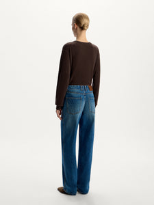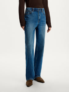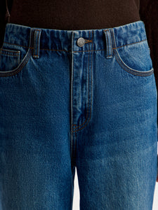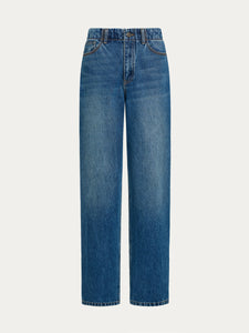 A classic pair for any season, these straight-leg jeans are crafted from organic 13-oz denim in versatile blue. Designed to sit high on the waist, they feature a seamlessly integrated waistband for a modern twist on a traditional design.
