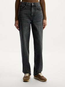 A go-to pair for effortless styling, these jeans boast a high-rise fit, full length, and a versatile dark grey shade. They are crafted from 14-oz denim, dyed using Indigo Flow, which requires 17% less water and reduces CO2 emissions by 53%.
