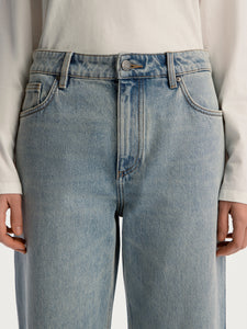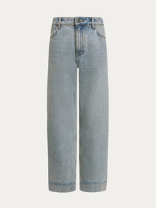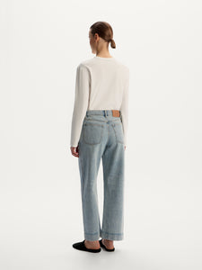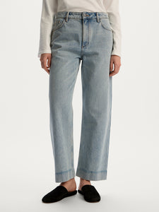 Featuring the coveted horseshoe silhouette, these jeans are designed with subtly curved legs and hems that mimic an unseamed finish. The washed blue denim is delicately brushed and tinted for a vintage-inspired look. Crafted from 13.5-oz denim with a distinct twill weave, they hold a sturdy, structured shape.