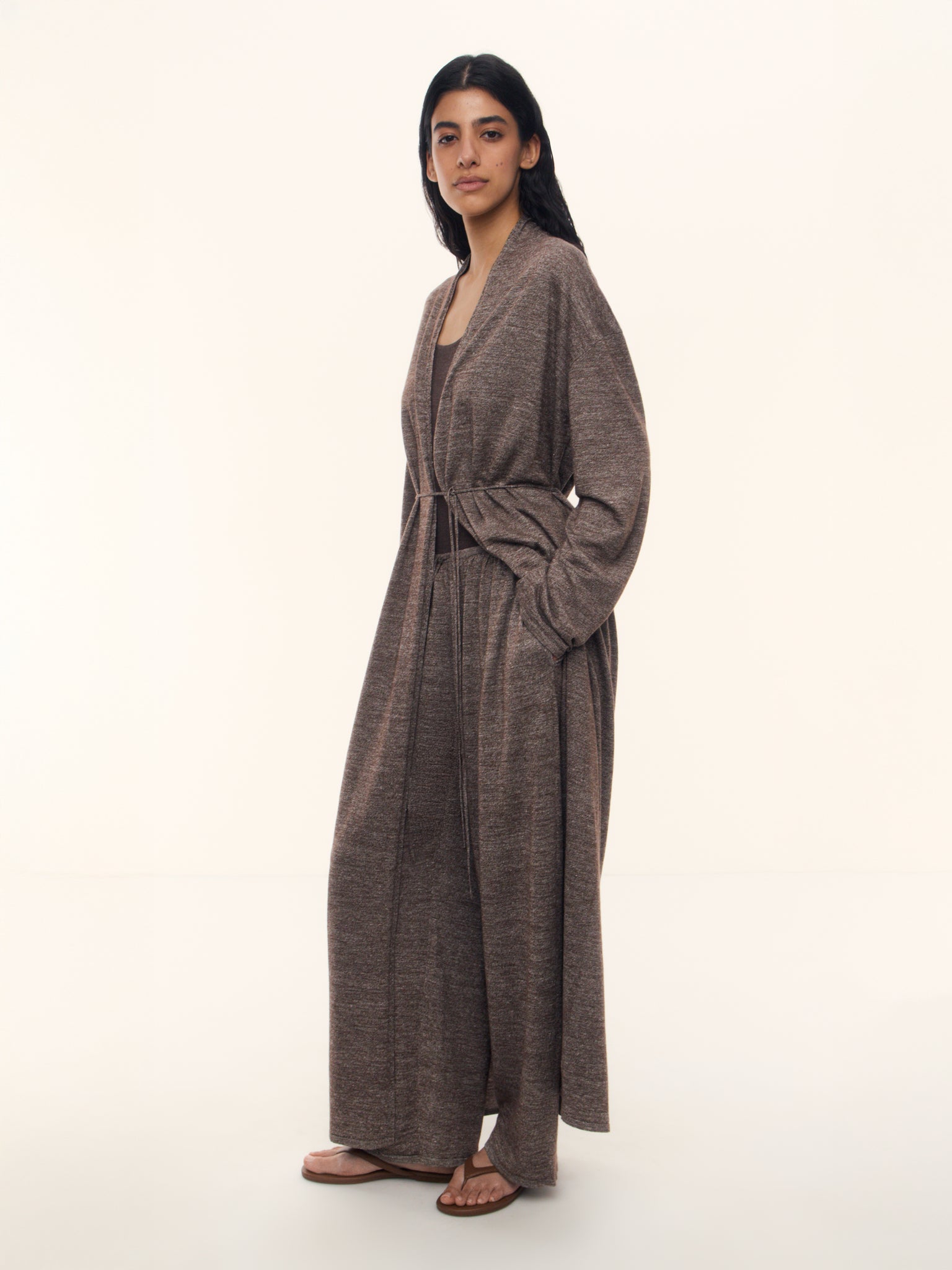 2. Clean maxi silhouette works perfectly for layering; the slim belt highlights the waist