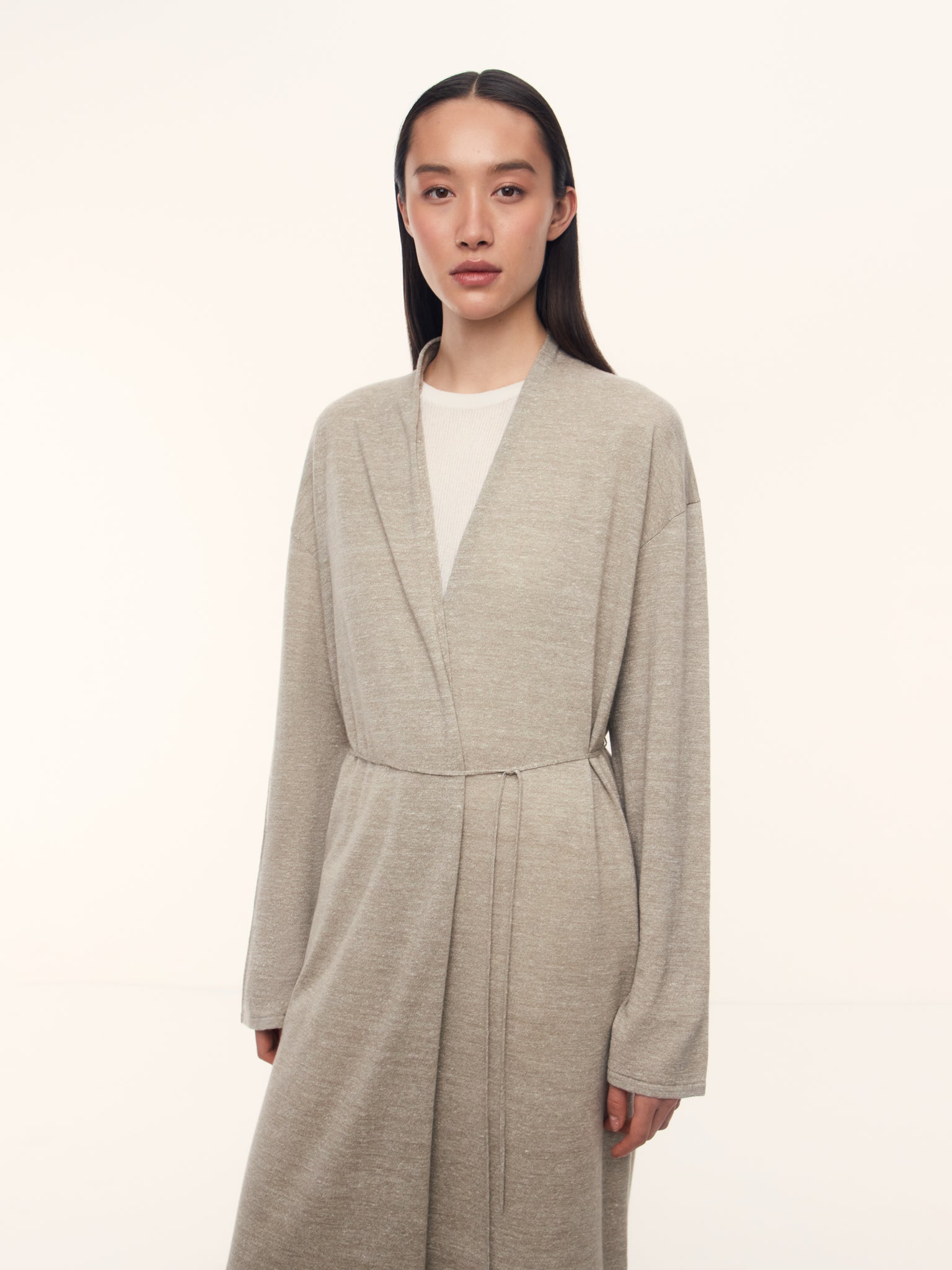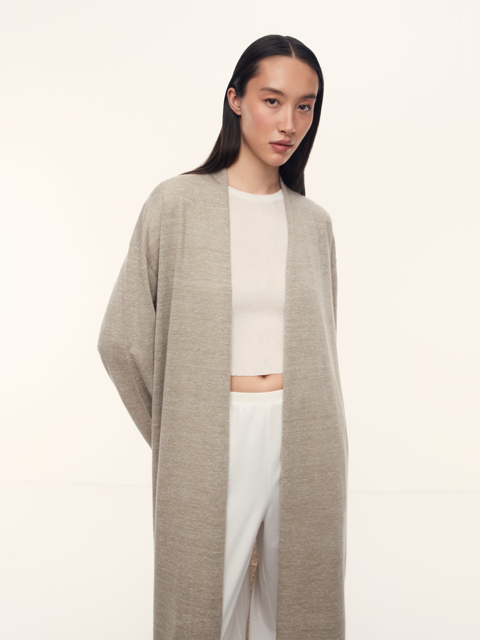 1. Rare blend of fine wool and undyed linen, knitted in a single strand for a lightweight, breathable knit suitable for the entire warm season