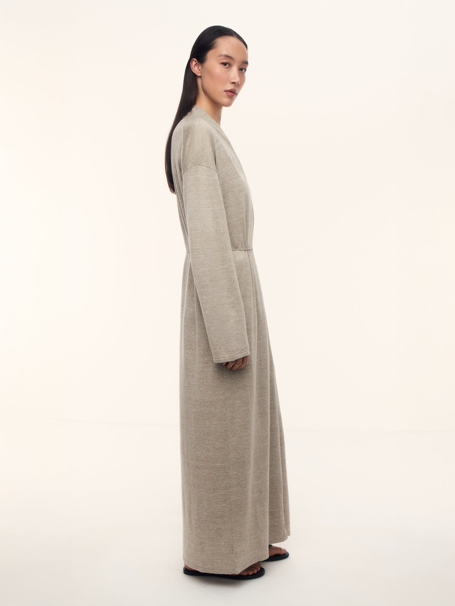2. Clean maxi silhouette works perfectly for layering; the slim belt highlights the waist