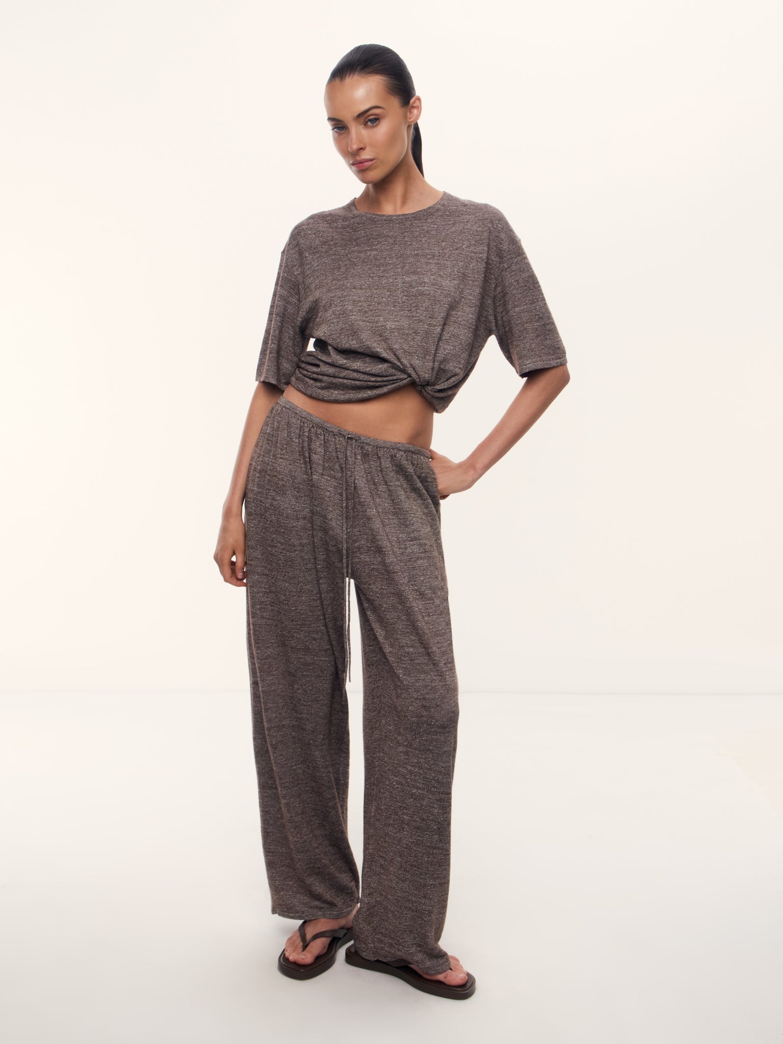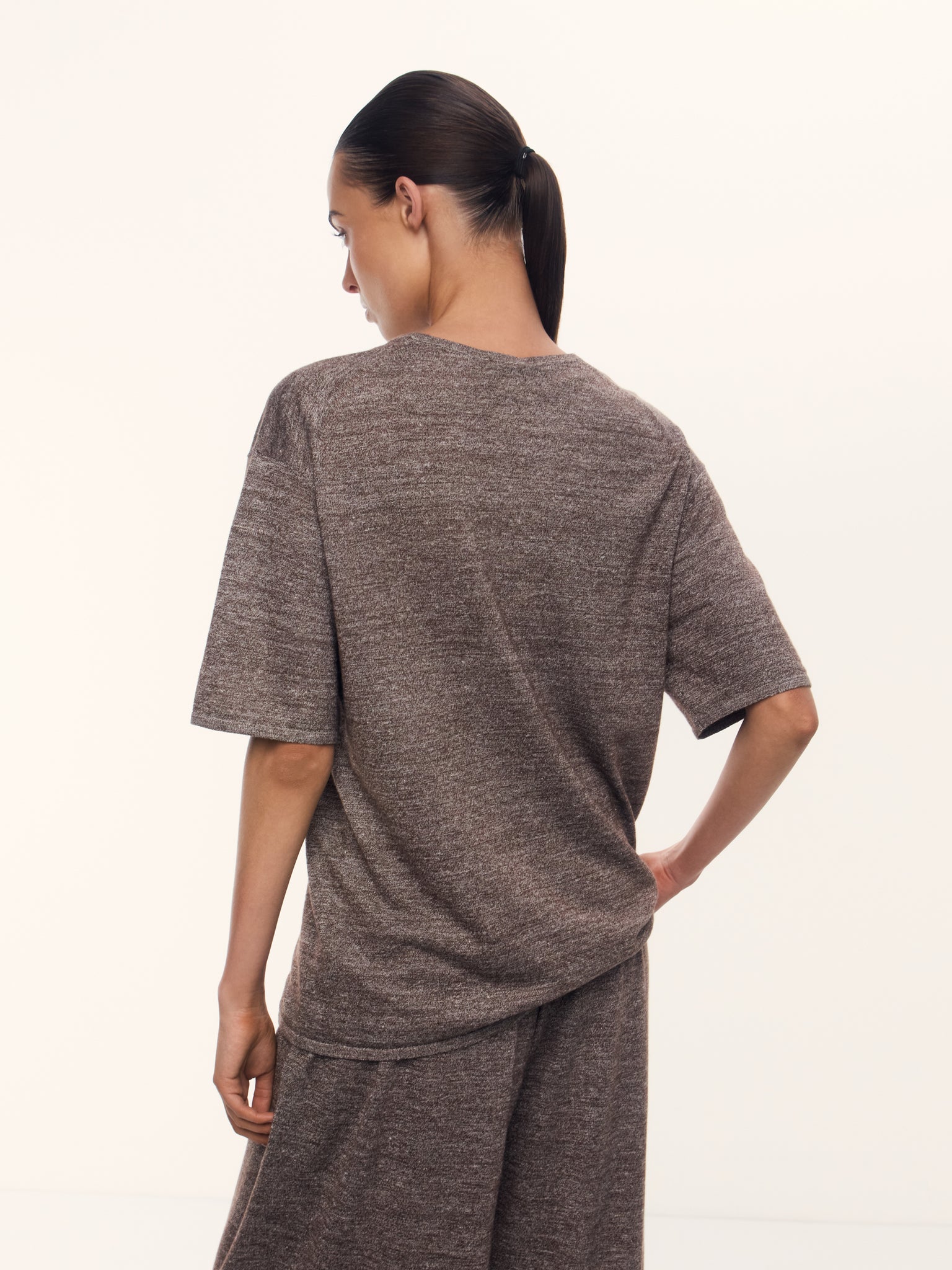 1. Rare blend of fine wool and undyed linen, knitted in a single strand for a lightweight, breathable knit suitable for the entire warm season