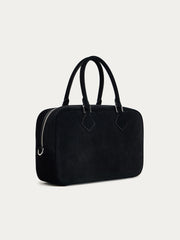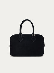 The ultimate city accessory, this suede bowler bag features a single compartment, two handles, and a detachable shoulder strap lined with light-toned leather to prevent colour transfer onto your clothing. Metal feet protect the base from scratches.