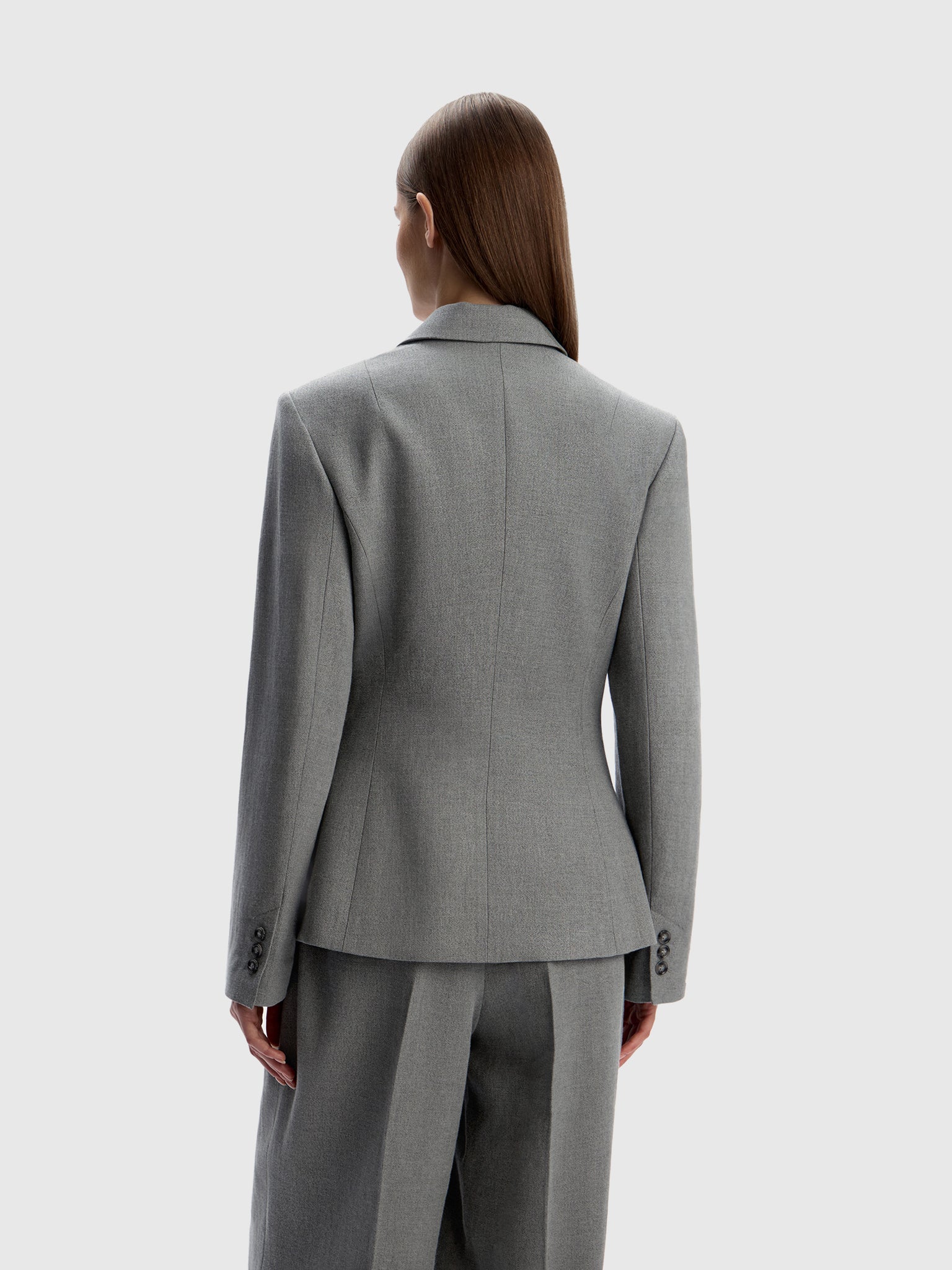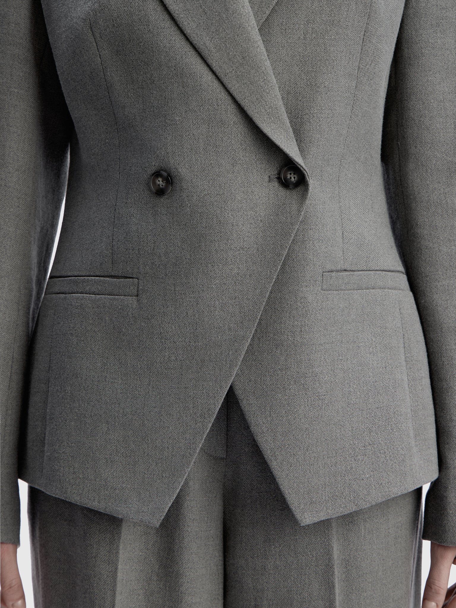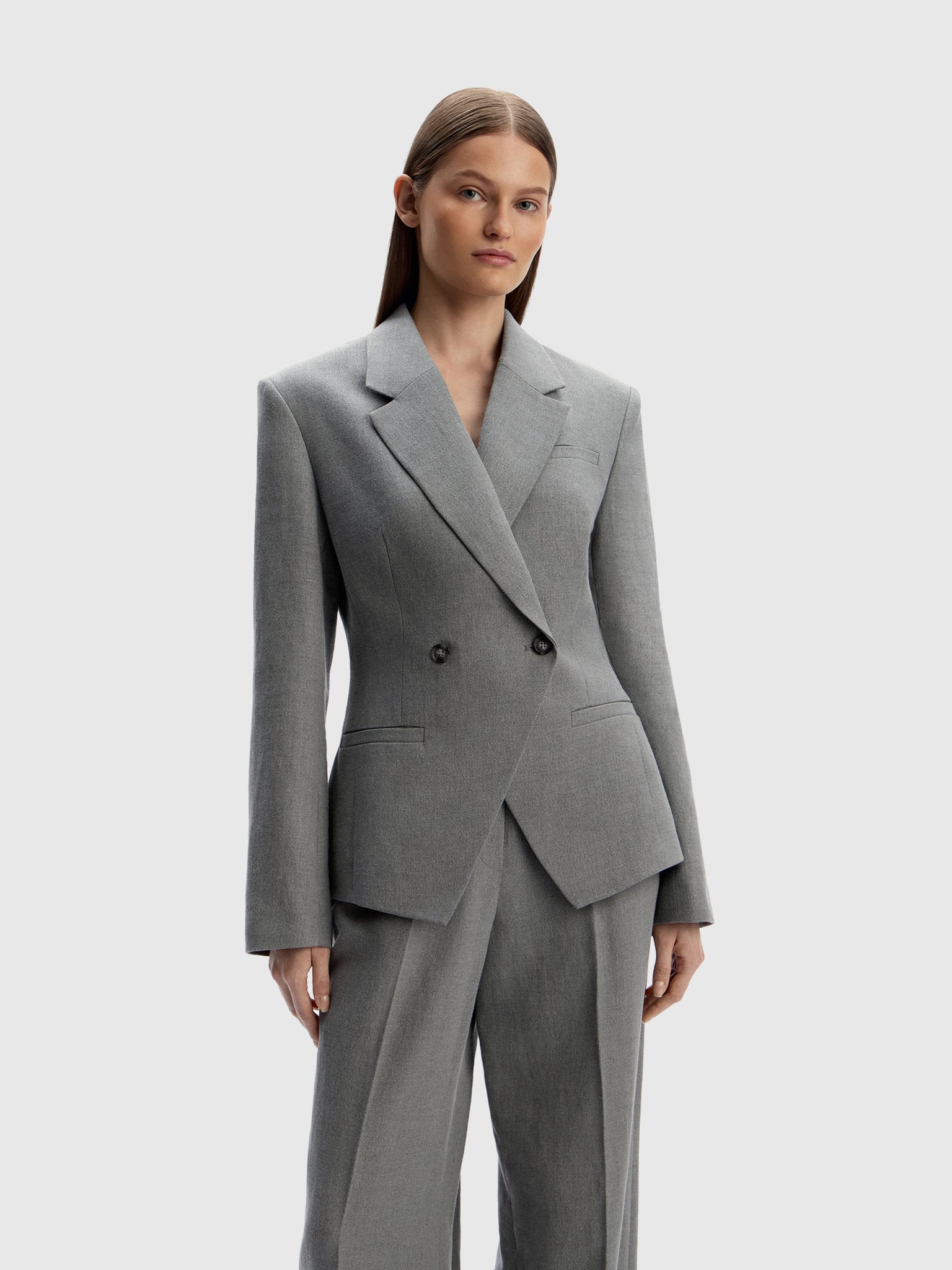 Crafted from a suit blend of linen and poly-viscose, this blazer offers a statement double-breasted silhouette, designed to accentuate your waist. Added synthetic fibres prevent linen from wrinkling and make it softer. Complete the set with the matching 12 STOREEZ trousers.