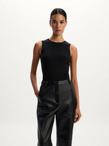 Featuring a timeless crew neck, cosy wide straps, and a versatile length, this tank top is destined to become your new favourite. It's crafted from a tactile blend of viscose and wool with delicate seams, making it perfect for layering under other pieces.