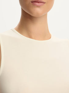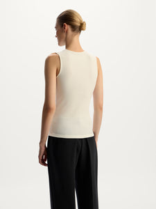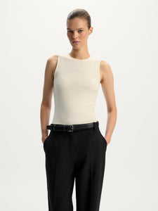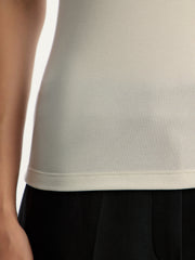 Featuring a timeless crew neck, cosy wide straps, and a versatile length, this tank top is destined to become your new favourite. It's crafted from a tactile blend of viscose and wool with delicate seams, making it perfect for layering under other pieces.