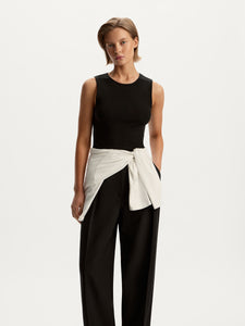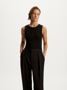 Featuring a timeless crew neck. cosy wide straps, and a versatile length, this tank top is destined to become your new favourite. It's crafted from a tactile blend of viscose and wool with delicate seams, making it perfect for layering under other pieces.