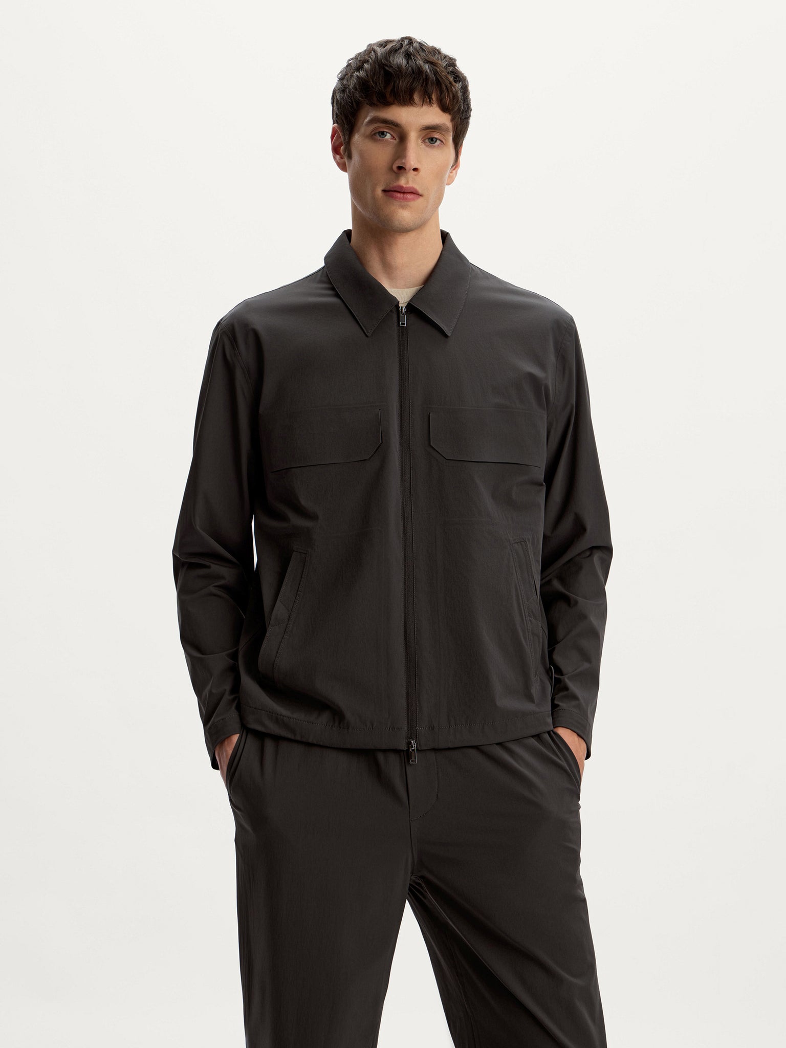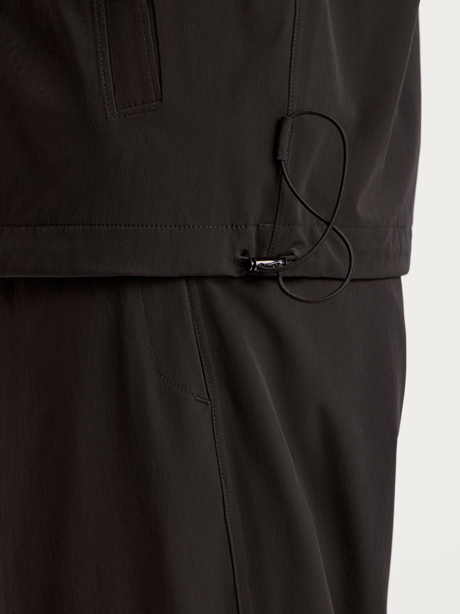 A lightweight layer for city strolls and outdoor escapes, this bomber is crafted from soft, high-tech fabric with a water-repellent finish by our Japanese supplier. Designed with laser-cut details and bonded seams for a sleek look, it features drawstrings at the hem and cuffs to adjust the fit. Pair with the matching 12 STOREEZ trousers.