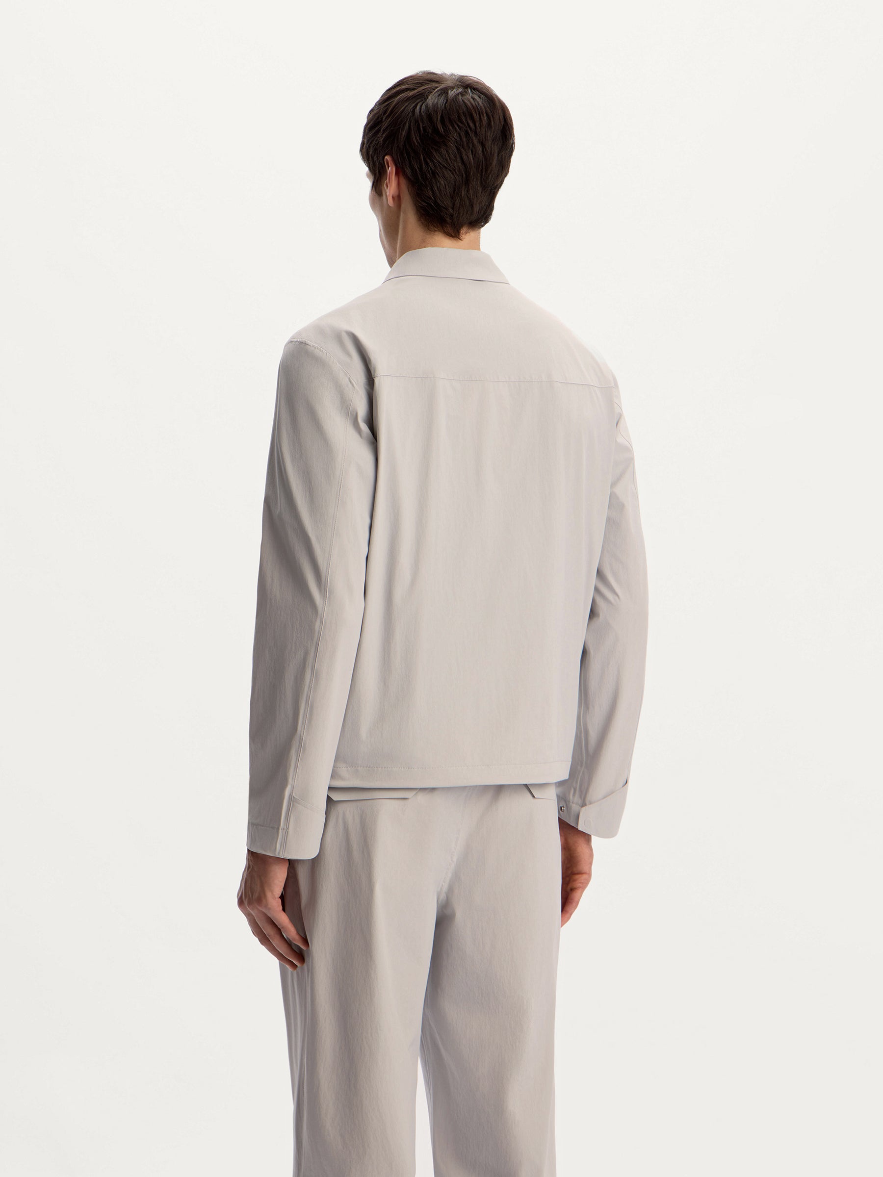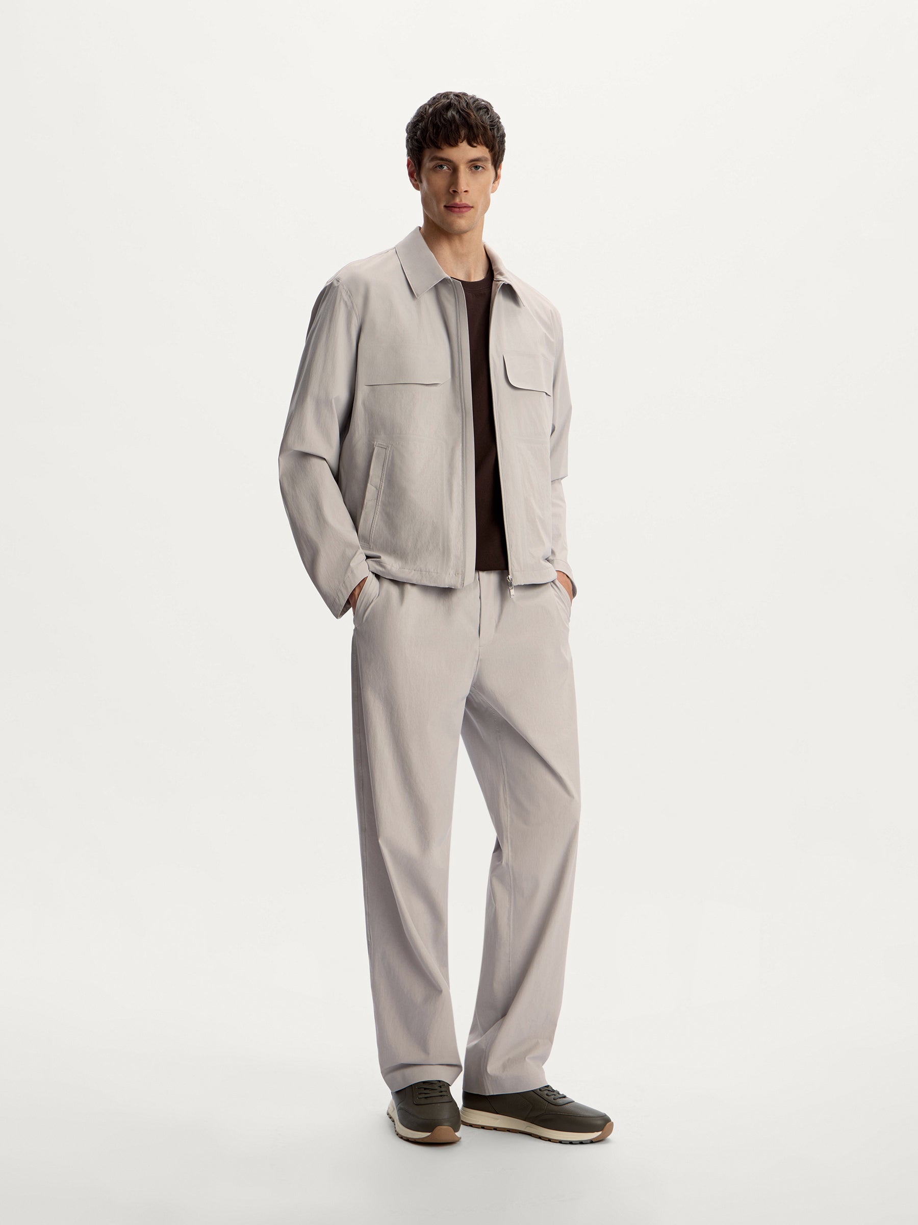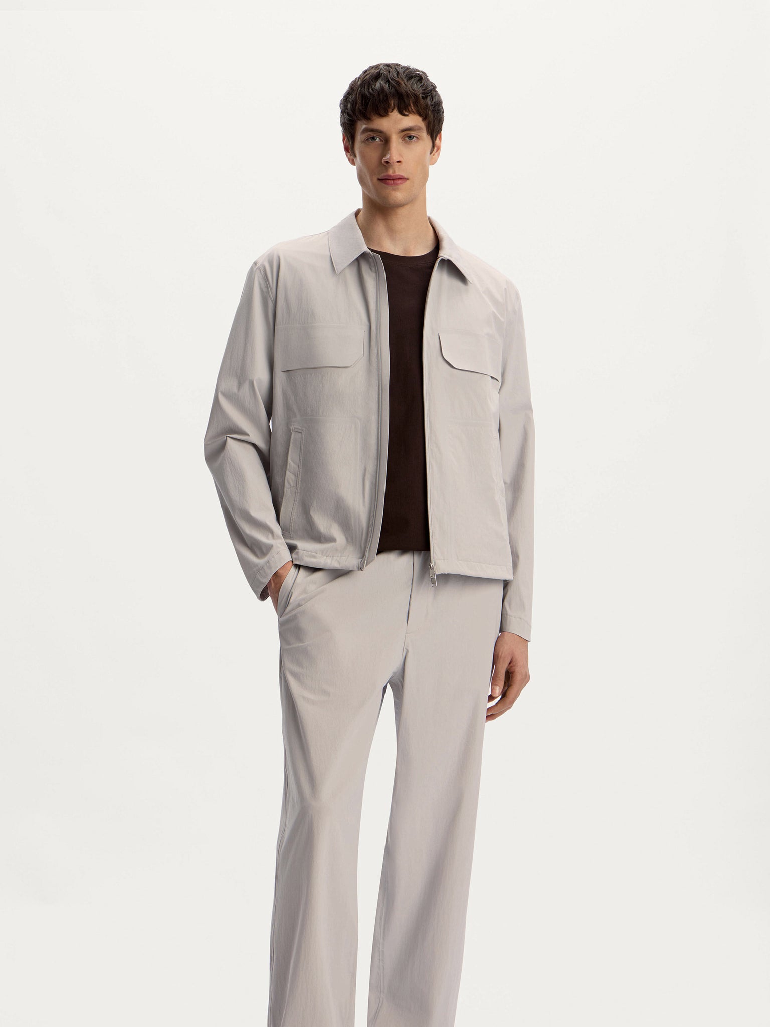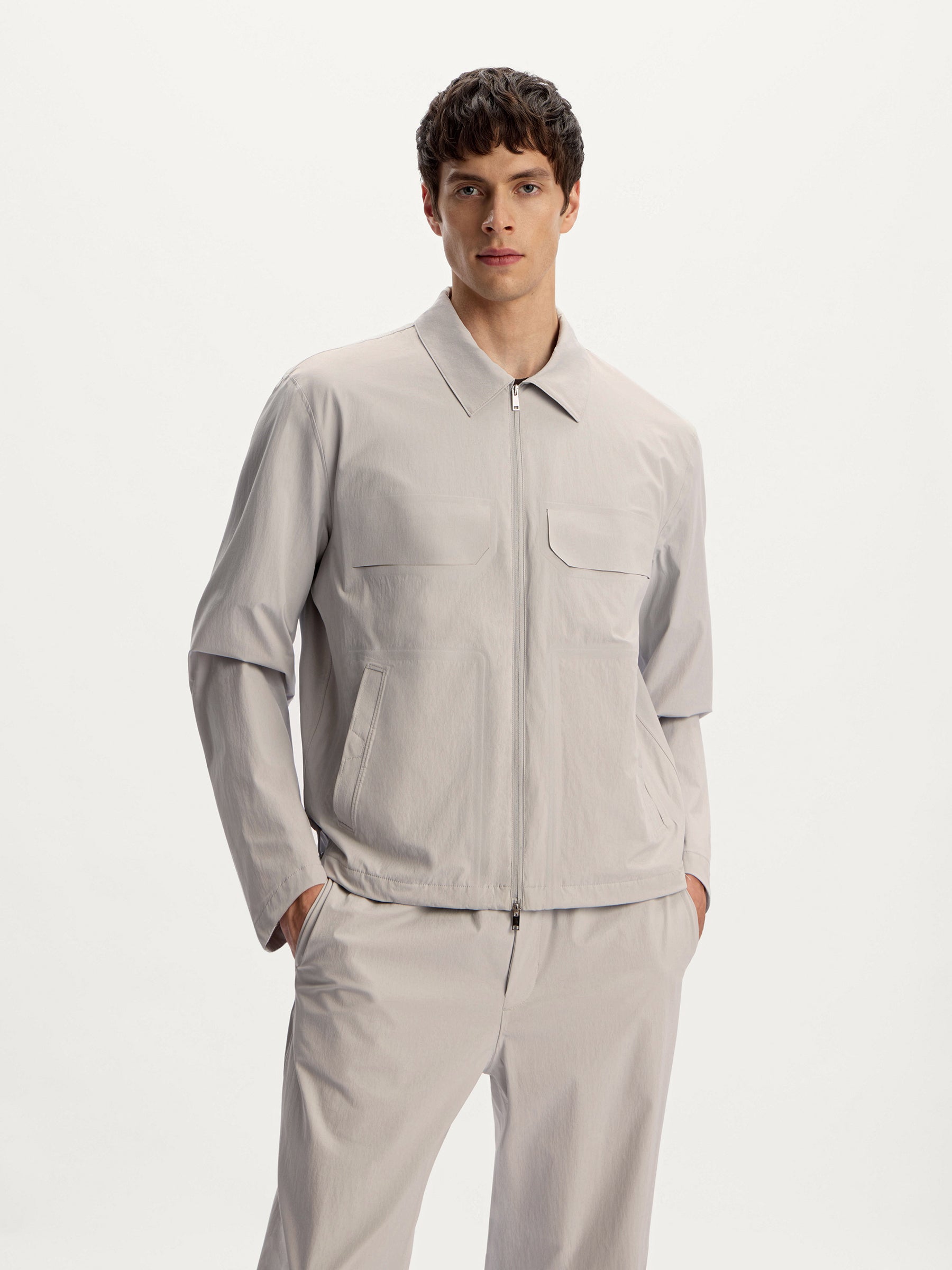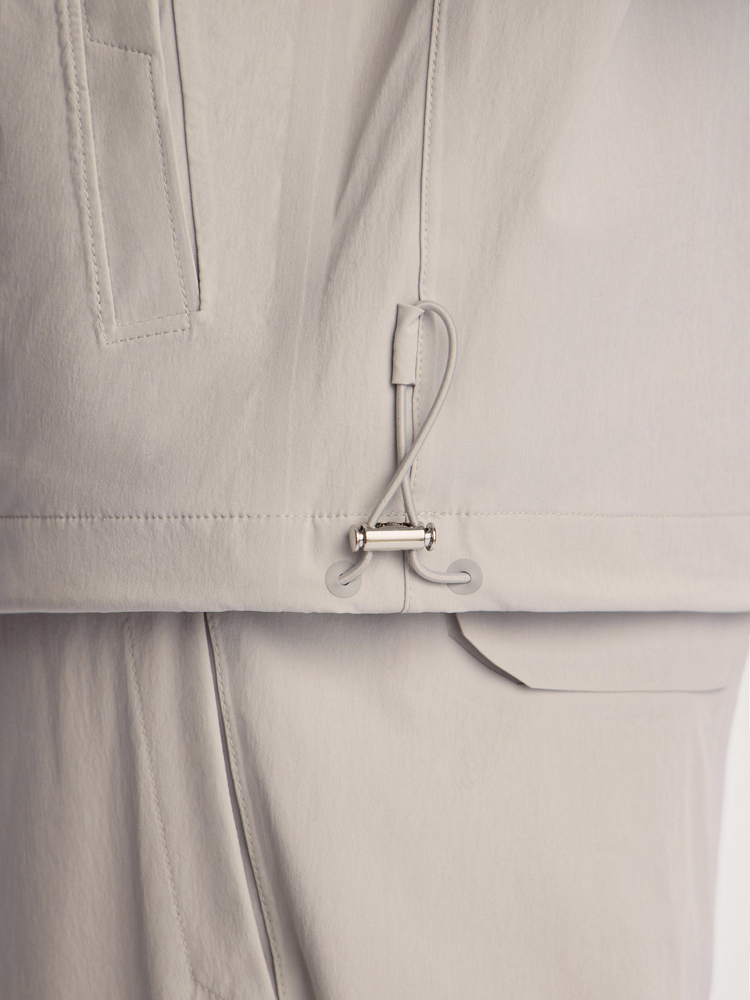 A lightweight layer for city strolls and outdoor escapes, this bomber is crafted from soft, high-tech fabric with a water-repellent finish by our Japanese supplier. Designed with laser-cut details and bonded seams for a sleek look, it features drawstrings at the hem and cuffs to adjust the fit. Pair with the matching 12 STOREEZ trousers.