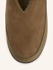 3. Lined with natural shearling featuring dense, trimmed wool