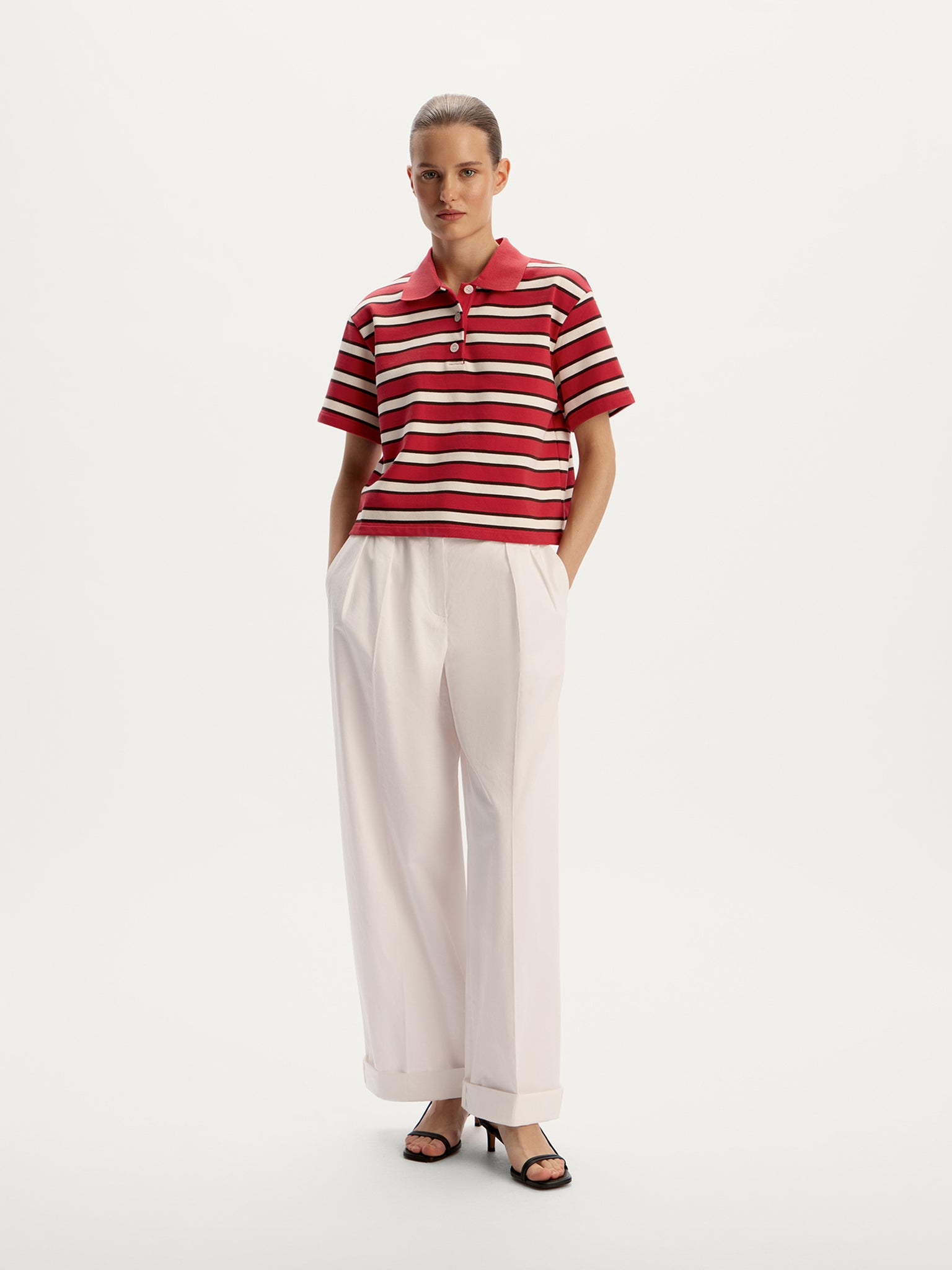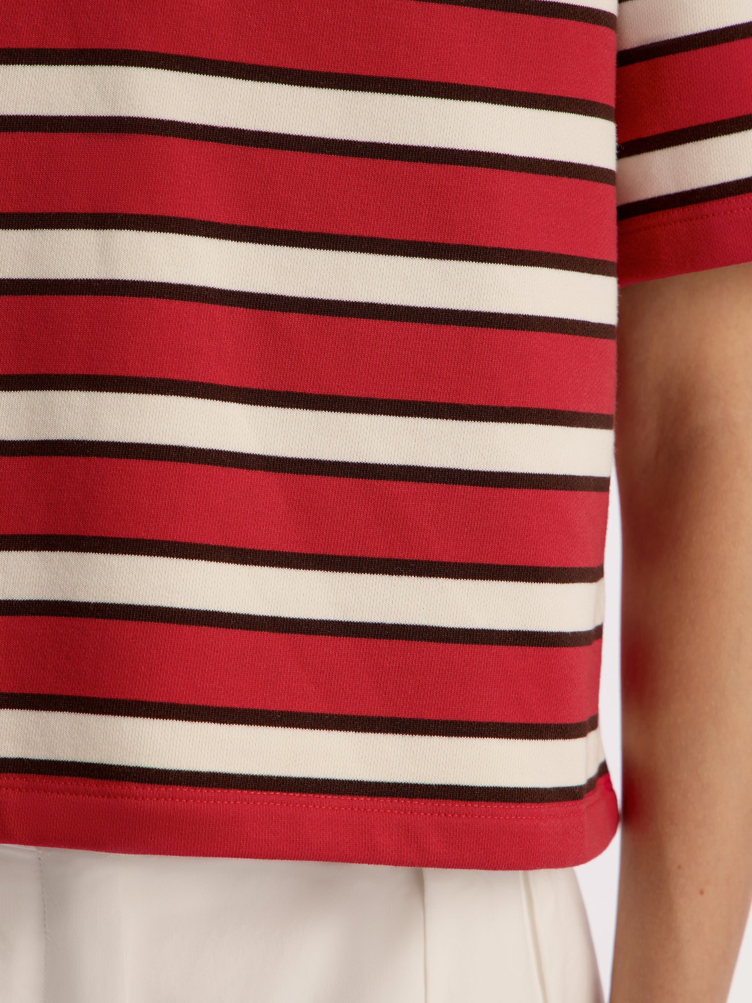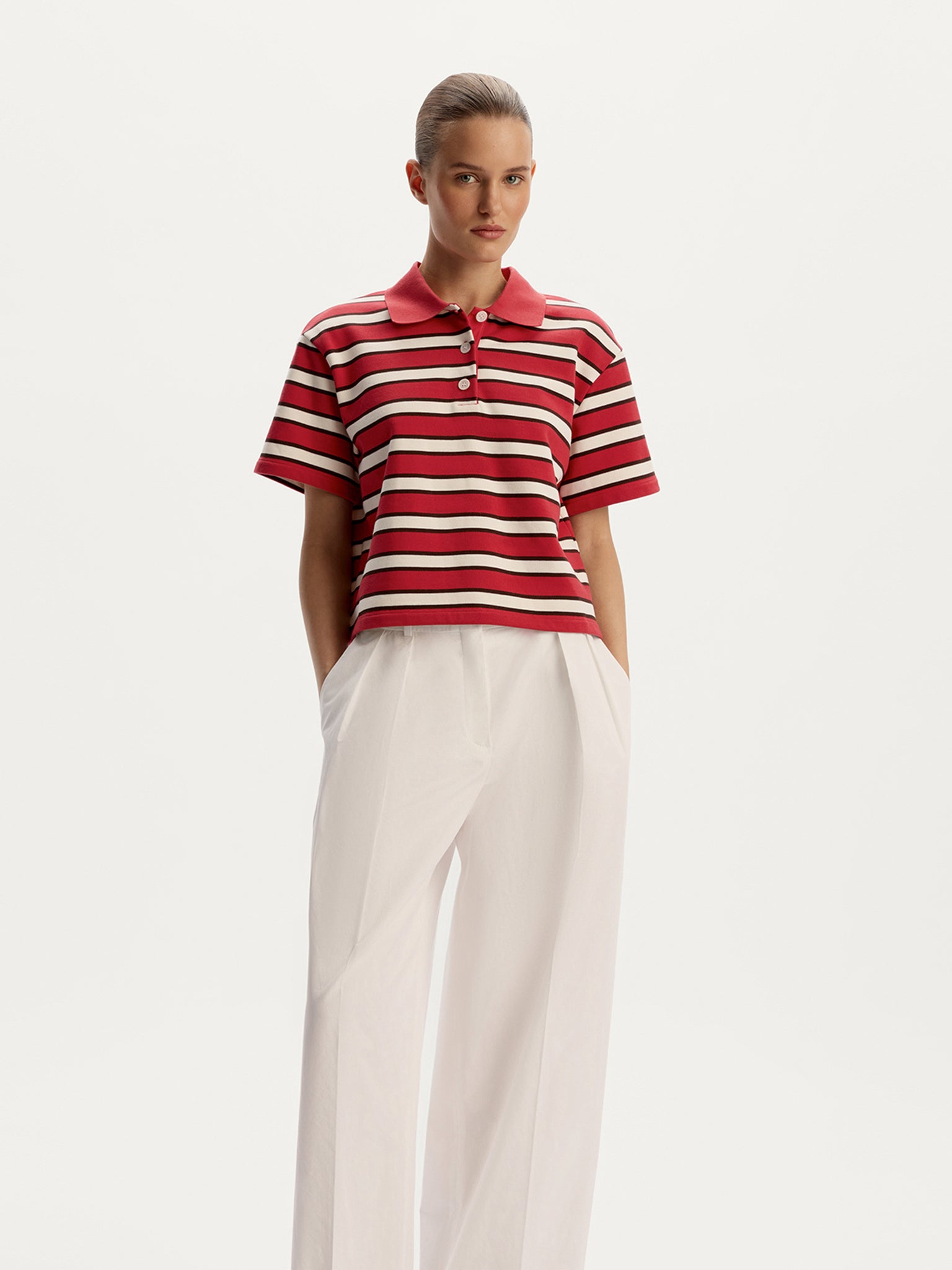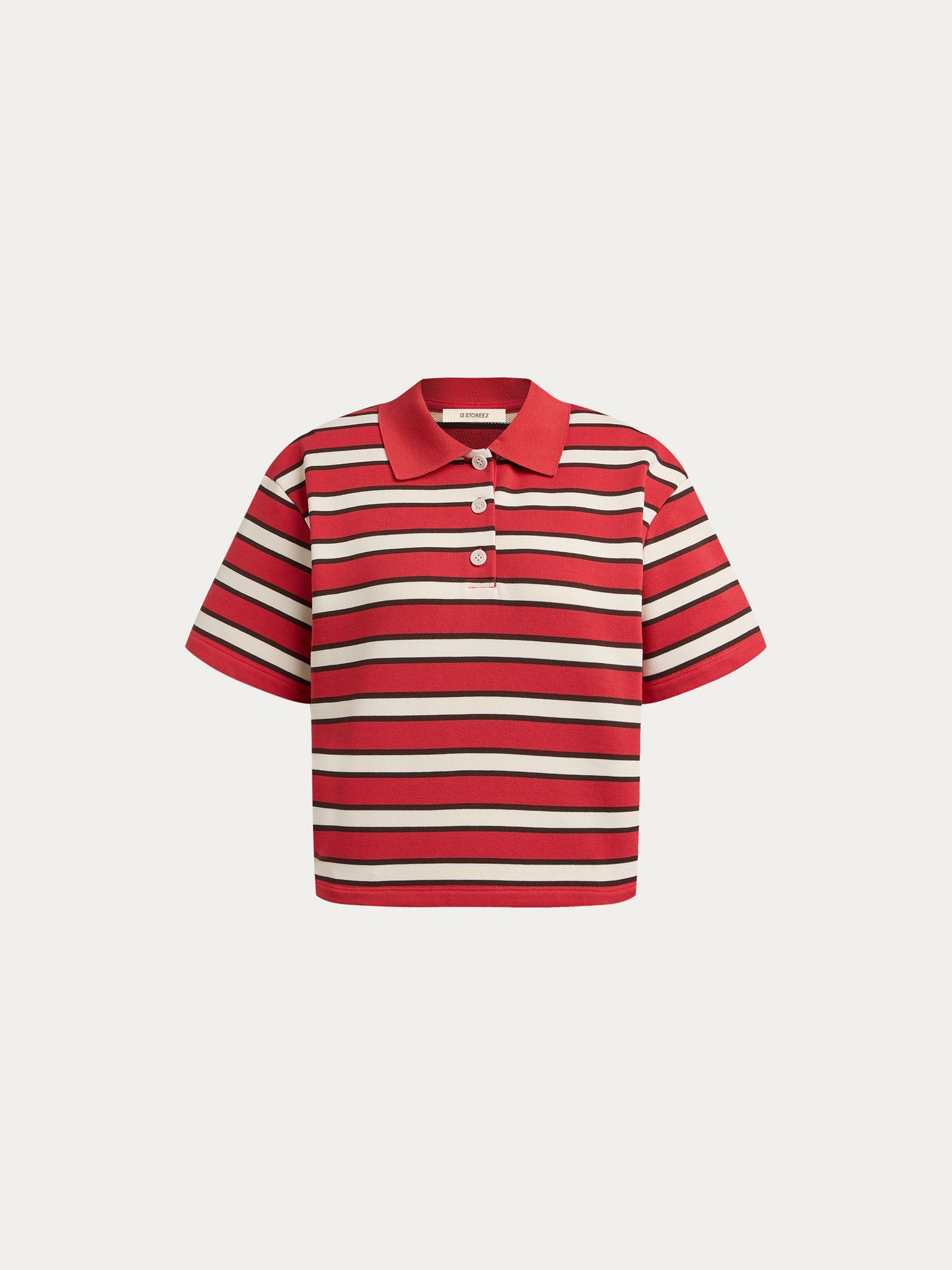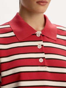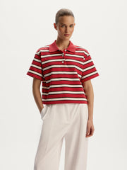 A fresh take on a classic, this cropped terry polo T-shirt is made from thin French terry with a touch of polyester for added durability and easy care. Its relaxed fit, extended sleeves, and neatly aligned dynamic stripes make it a standout yet versatile piece for any wardrobe.