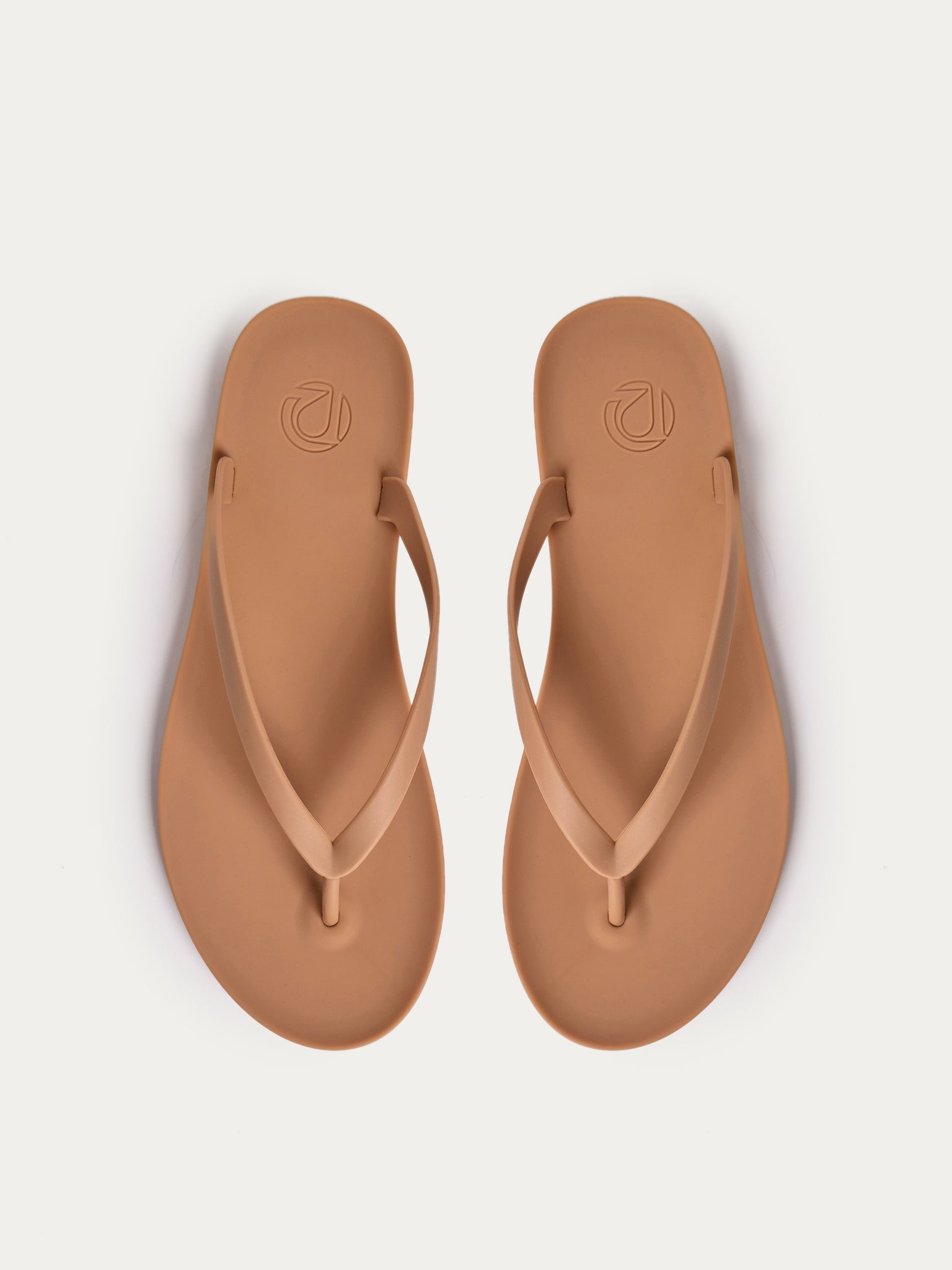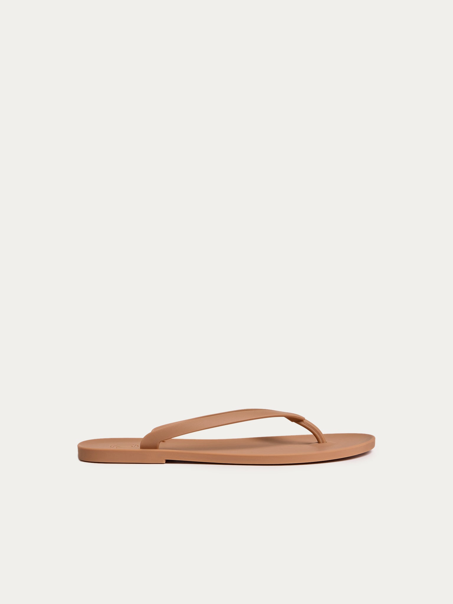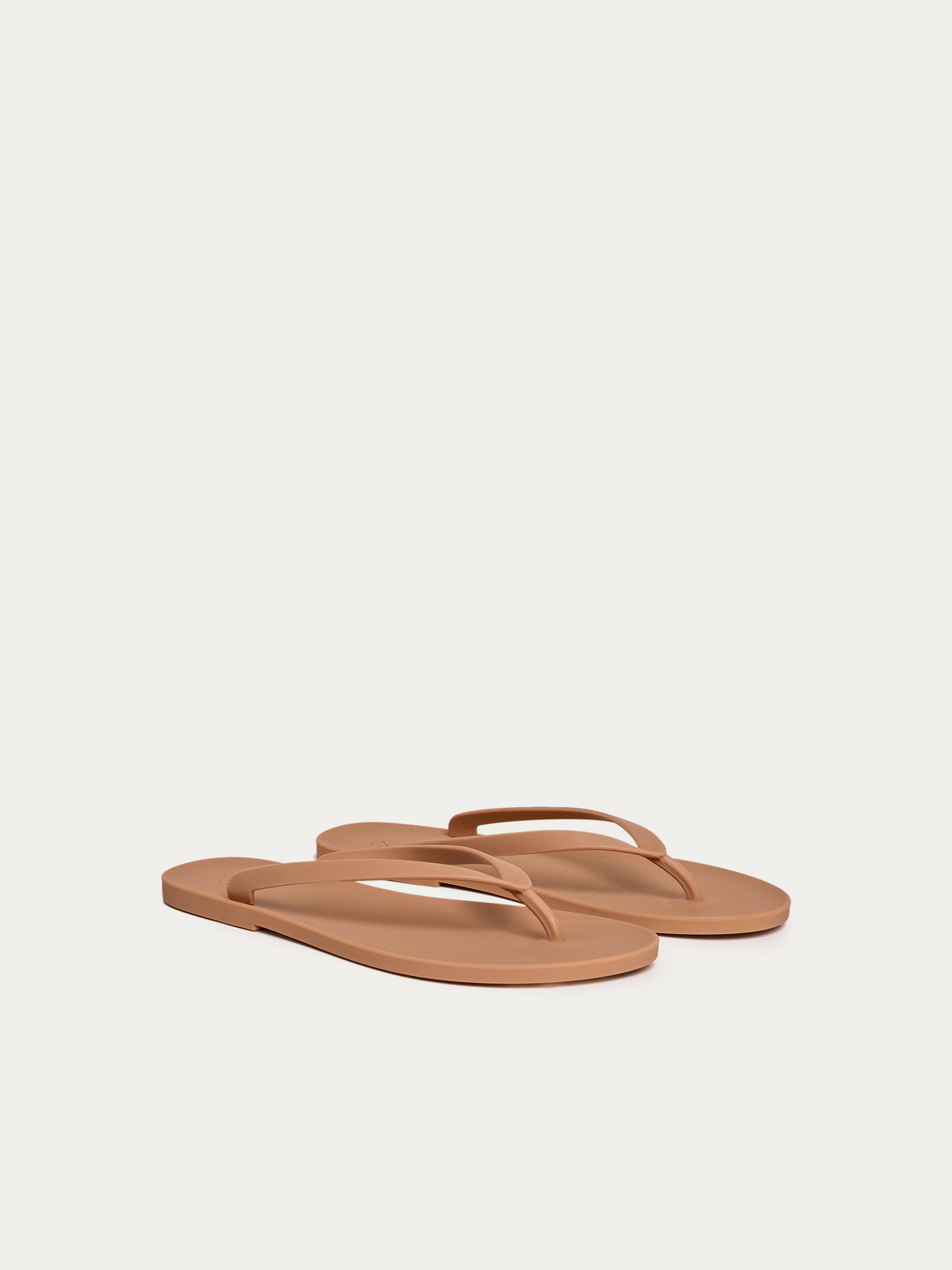 A pair of thong sandals you can easily pack in your bag. They are designed with soft, comfortable straps and set on a flexible, non-slip sole so that you can wear them to the pool. The versatile colour suits any beach look.