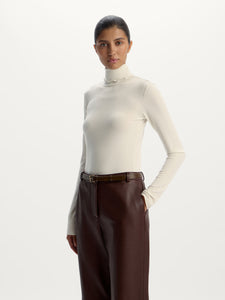 A basic turtleneck for your layered looks. Designed in a fuss-free silhouette from a tactile blend of viscose, wool, and elastane, it softly hugs your curves and keeps you warm without drawing attention away from your outfit. Elasticated seams prevent the garment from stretching out.