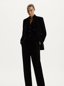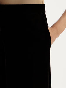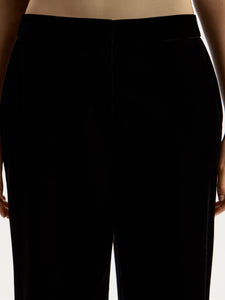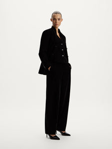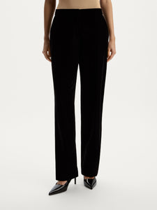 Crafted from dense velvet, these trousers are designed for special occasions. Slightly lowered at the waist, they feature a straight-leg fit with pressed creases and zips at the hem, allowing you to customise their silhouette.