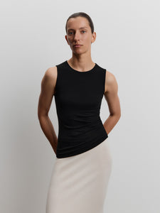 Featuring a timeless crew neck, cosy wide straps, and a versatile length, this tank top is destined to become your new favourite. It's crafted from a tactile blend of viscose and wool with delicate seams, making it perfect for layering under other pieces.