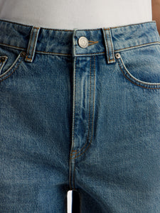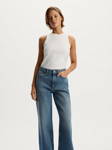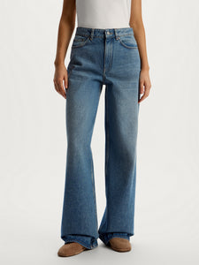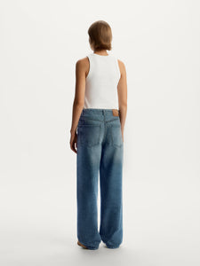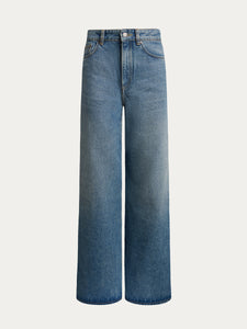 A timeless denim staple. these jeans feature a classic wide-leg silhouette with a high waist and five pockets. Crafted from structured 14.5-oz regenerative cotton. they are designed to become your go-to everyday pair. Their blue shade is achieved using Indigo Flow. which requires 17% less water and reduces CO2 emissions by 53%.
