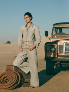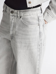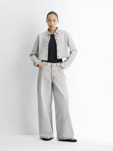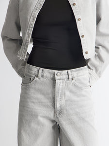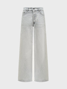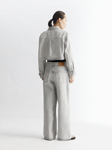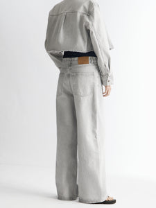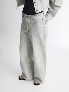 Sitting low on the waist, these jeans feature a long wide-leg silhouette, flared from the hips down. Their light grey shade pairs well with any colour, while their bold fit instantly transforms any casual look into a fashion statement. Crafted from GOTS-certified organic cotton.