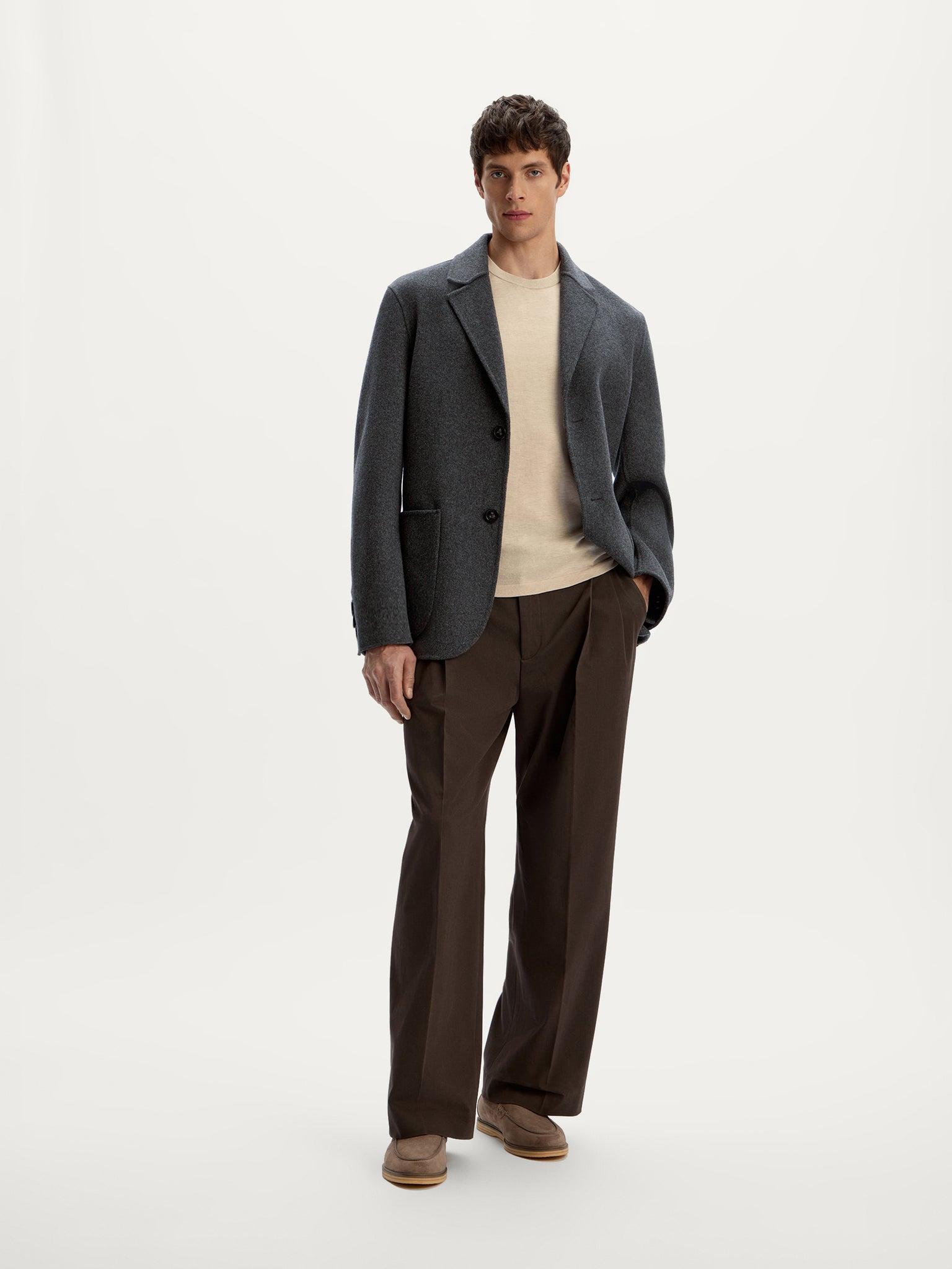 A staple for transitional weather, this blazer offers warmth and ease without the need for heavy layers. Featuring a classic silhouette with dropped shoulders and subtle back vents, it's crafted from fine Australian merino wool and lightweight cashmere from Inner Mongolia. Made using the double-face technique. the unlined design let you enjoy the soft texture of the wool-cashmere blend on both sides.