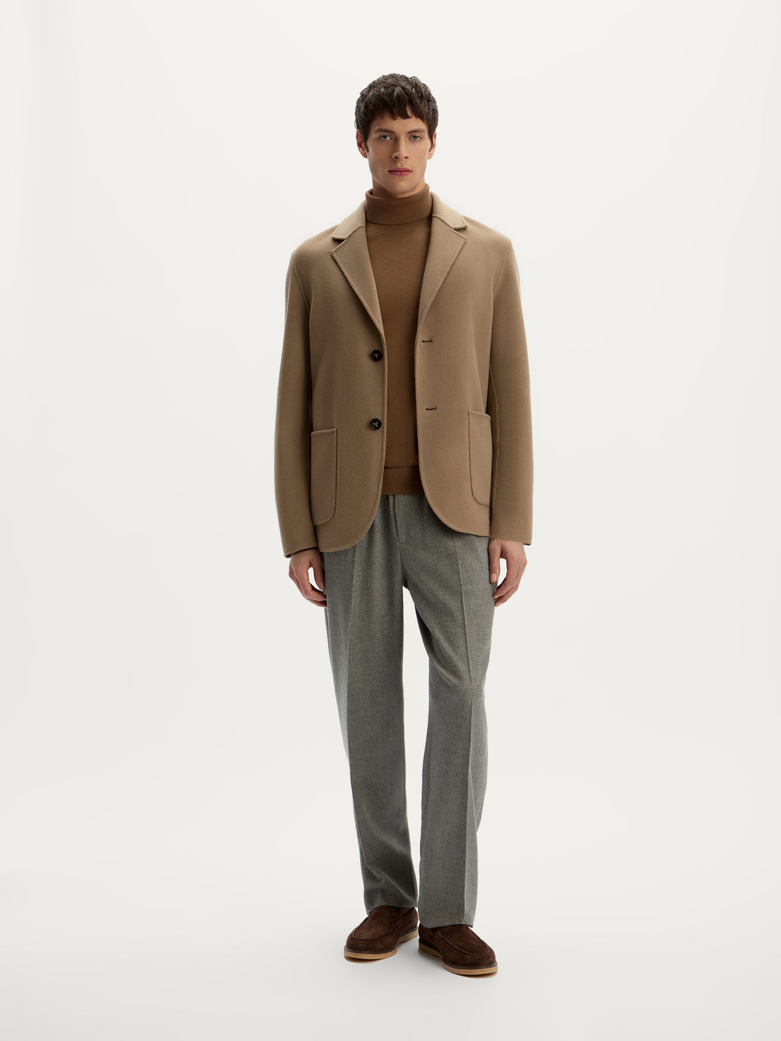 A staple for transitional weather, this blazer offers warmth and ease without the need for heavy layers. Featuring a classic silhouette with dropped shoulders and subtle back vents, it's crafted from fine Australian merino wool and lightweight cashmere from Inner Mongolia. Made using the double-face technique, the unlined design let you enjoy the soft texture of the wool-cashmere blend on both sides.