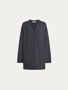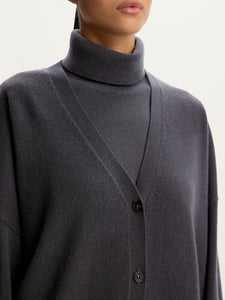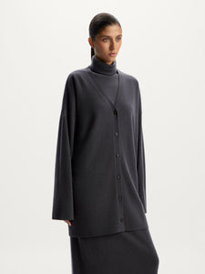 A versatile layer in a sumptuous mix of merino and cashmere, this cardigan features a roomy silhouette with dropped shoulders and oversized ribbed trims. Complete the look with the matching skirt and turtleneck from the capsule.