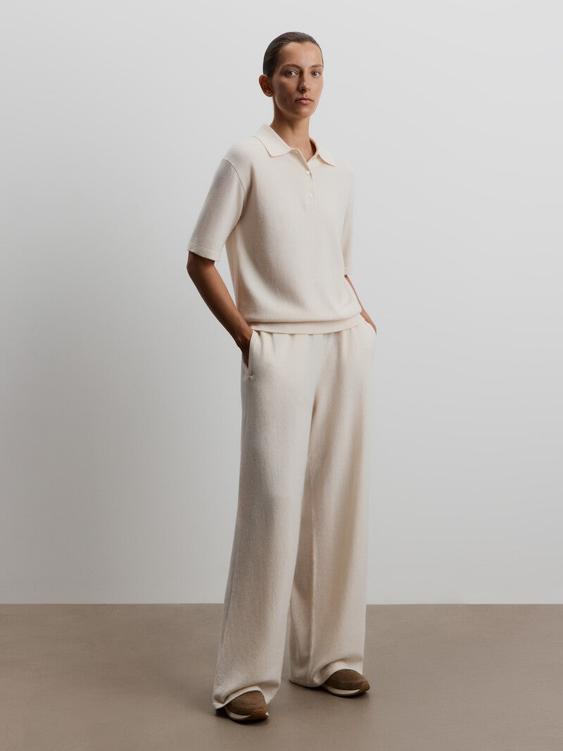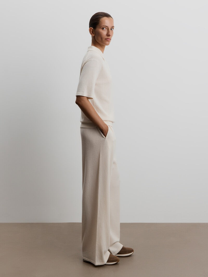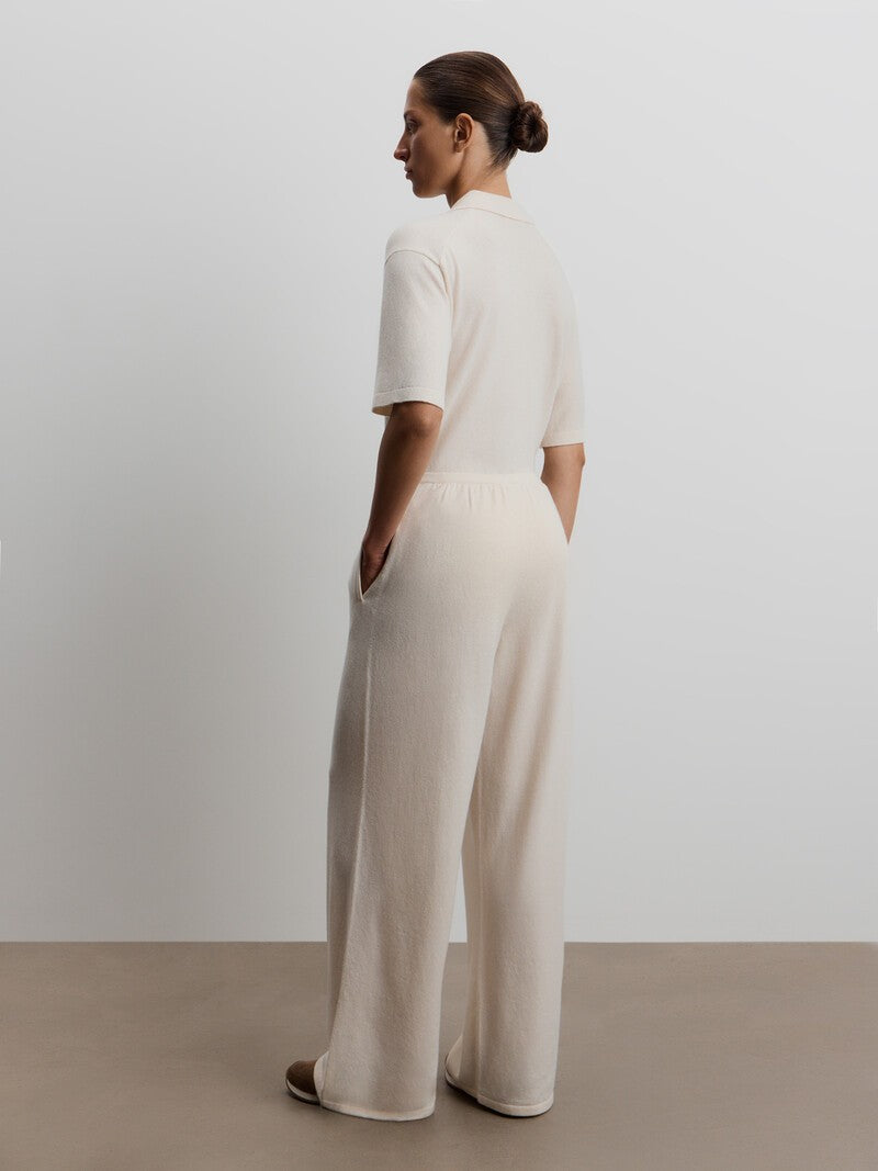 Designed with comfort in mind, these trousers feature a wide-leg silhouette with an elasticated waist. The blend of merino wool and soft cashmere wraps you in warmth and softness, while the relaxed fit helps prevent stretching at the knees. Complete the set with the matching 12 STOREEZ jumper.