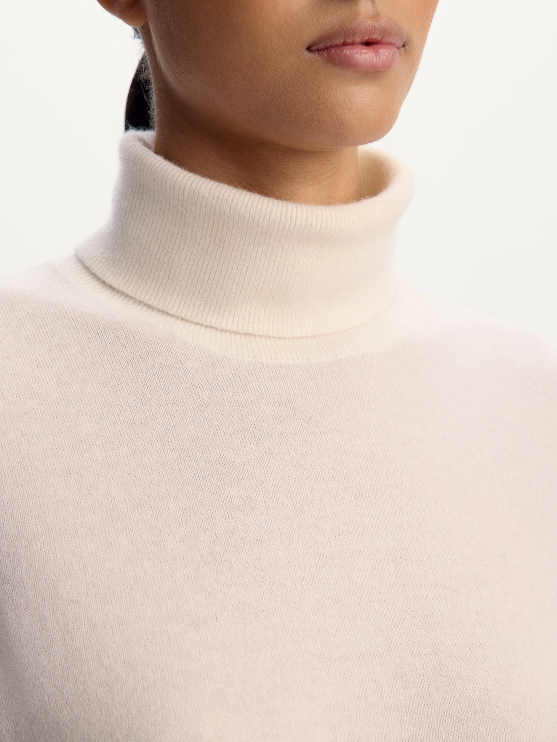 Your turtleneck style for when the days are still warm. It's designed in a cosy fit from a soft mix of merino wool and cashmere, complemented by an elastic hem that you can adjust for different silhouettes. Wear your under shirts and blazers.